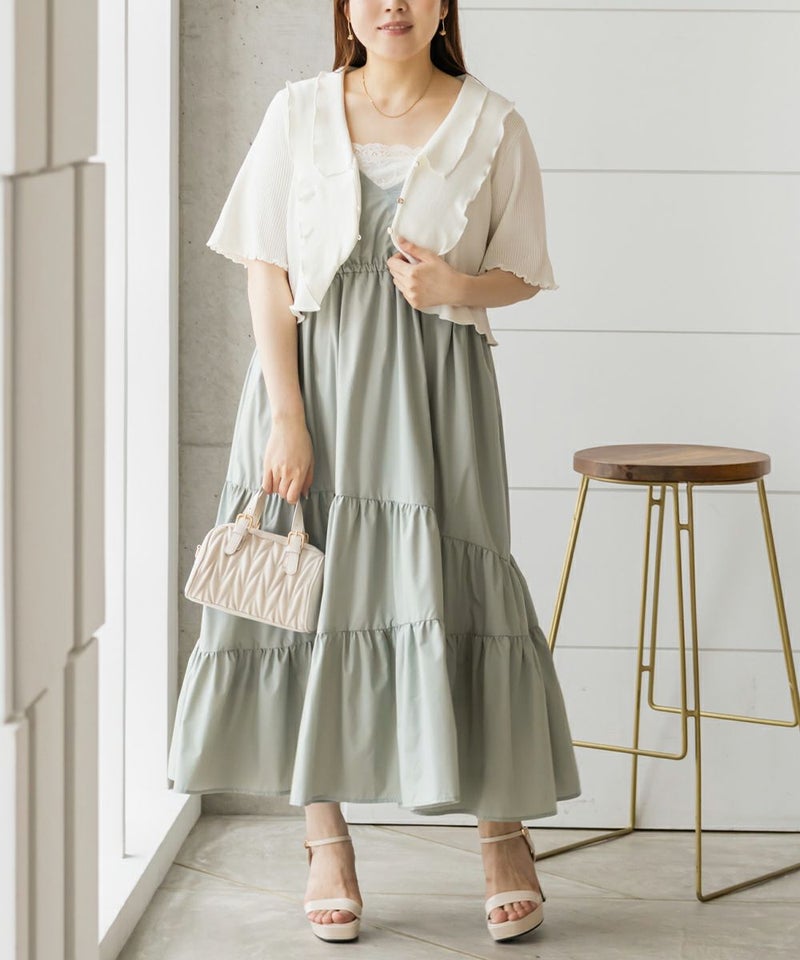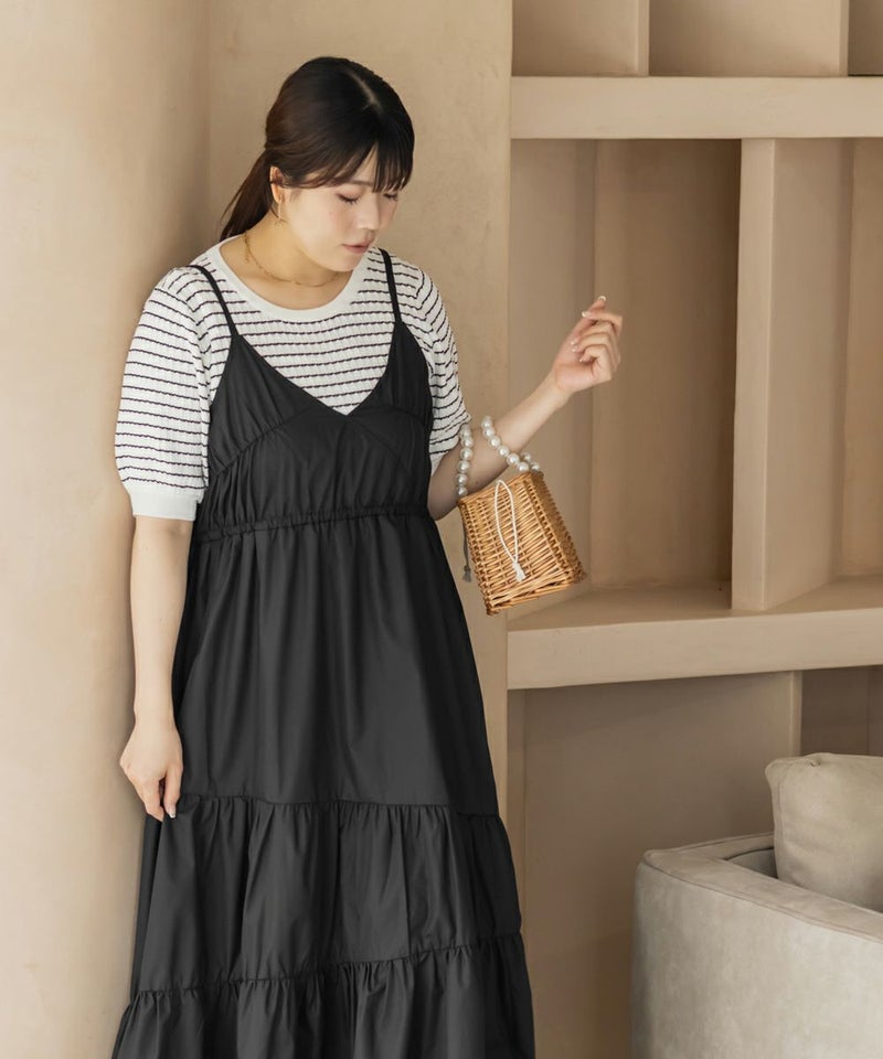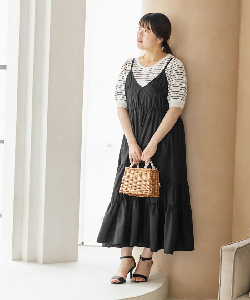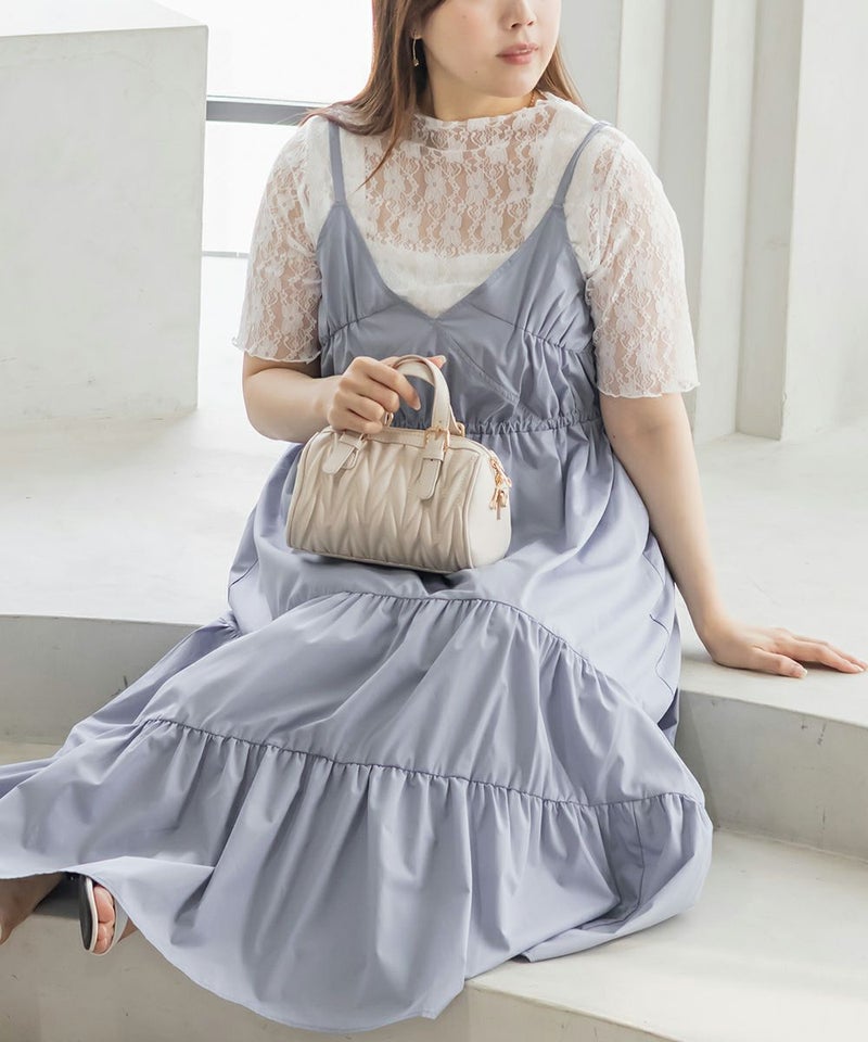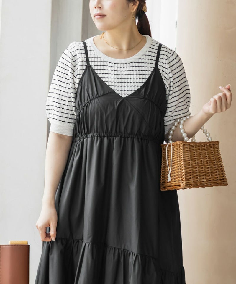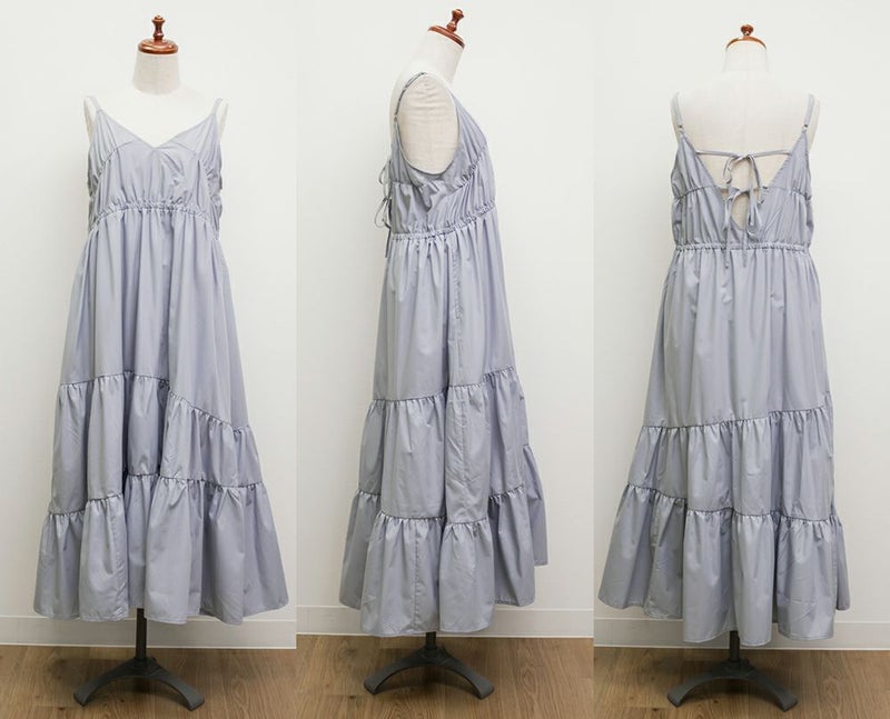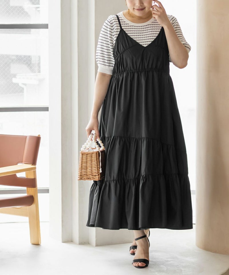 3Lサイズを着用しました。程よくゆとりを持たせたシルエット感で、厚みのあるインナーを合わせても問題なさそうです◎ 胸元の切替やギャザーで自然にメリハリが出て、バランスよく着こなせました! 斜めのティアードデザインが広がりすぎずフェミニンな雰囲気になって、シンプルなキャミワンピに飽きてきた方にもおすすめ!無地なのでインナーや小物合わせで印象チェンジしやすく、着回し力も高そうです!カラバリが可愛くて、テンションの上がるキャミワンピです♪