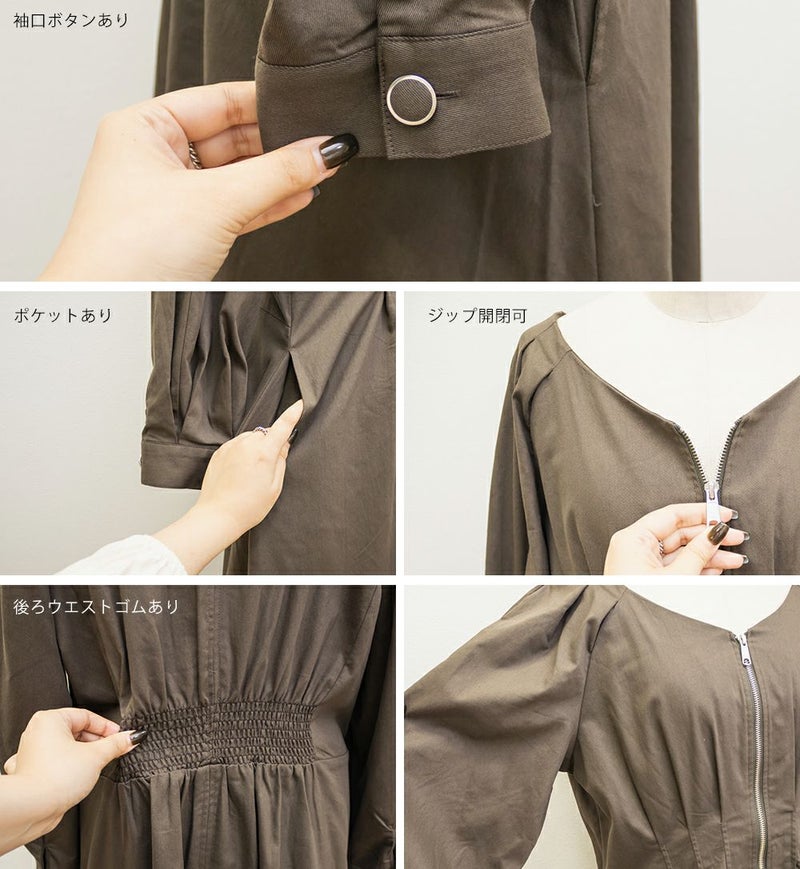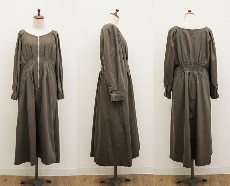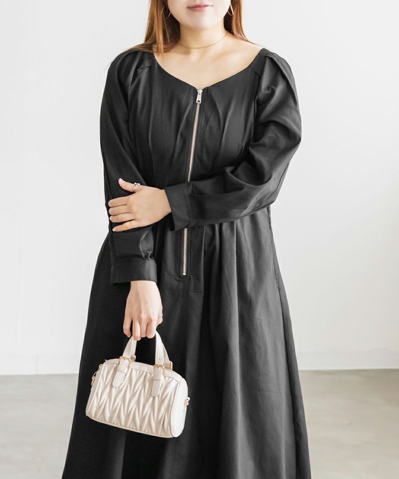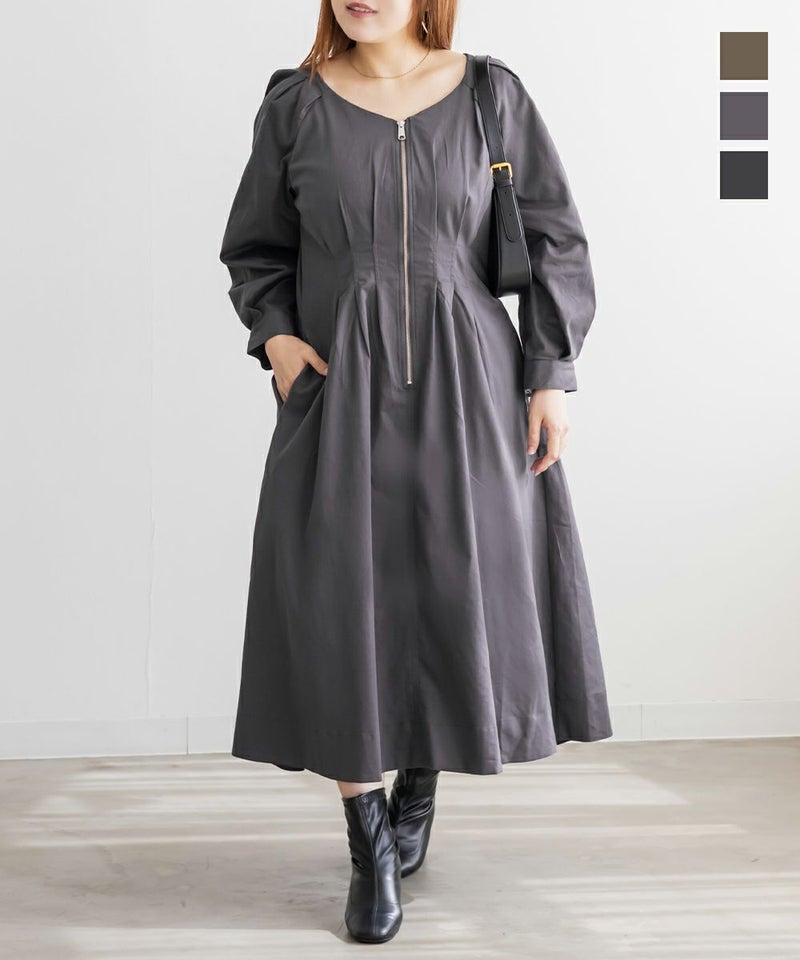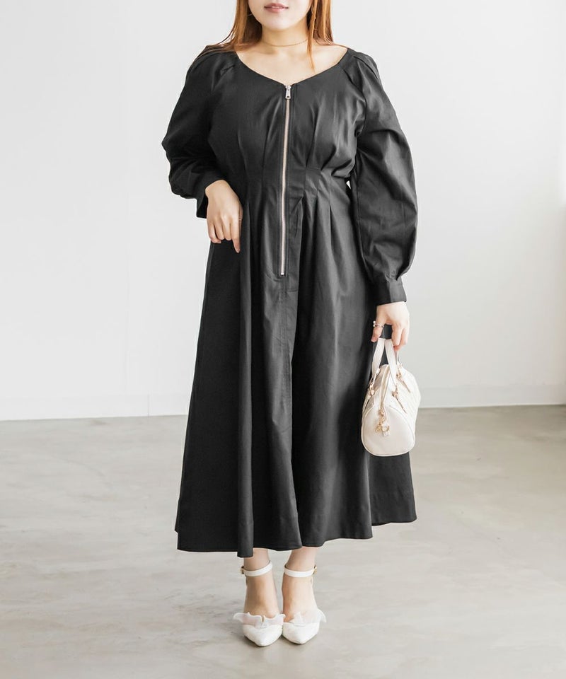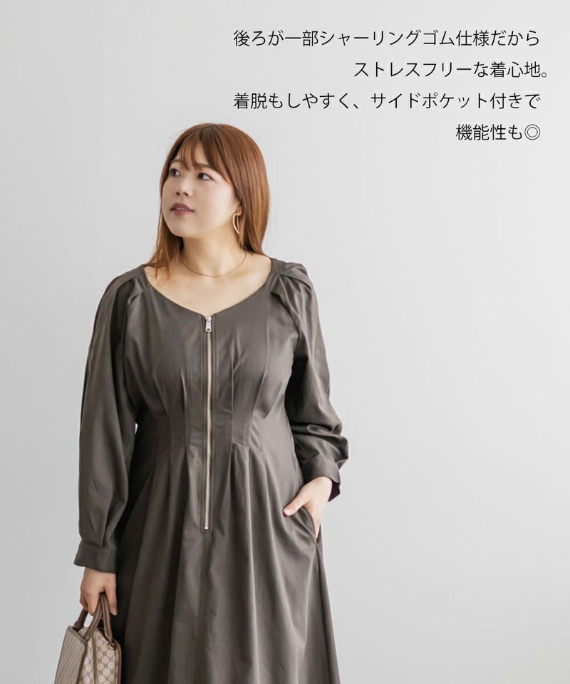 3Lサイズを着てちょうどよく楽な着心地でした!程よくハリのある生地なのでボディラインを拾わないのが嬉しいです♪ウエストにタックが入っていて、フィット&フレアシルエットになって女性らしいシルエットで着られます。ブーツやスニーカー、小物使いを変えるだけで違った印象に変化できます。フロントジップなのでメリハリが付いて、すっきりとした印象です。シンプルながら季節感もあってデザインなので、お出かけやデートにもおすすめです!