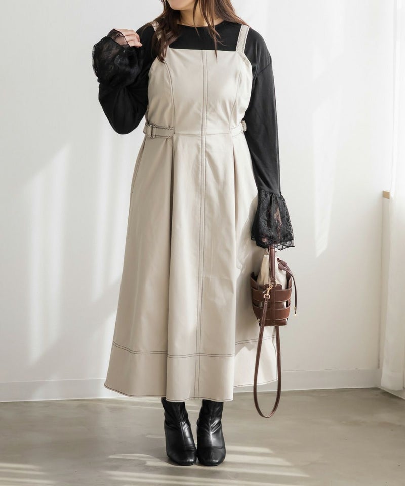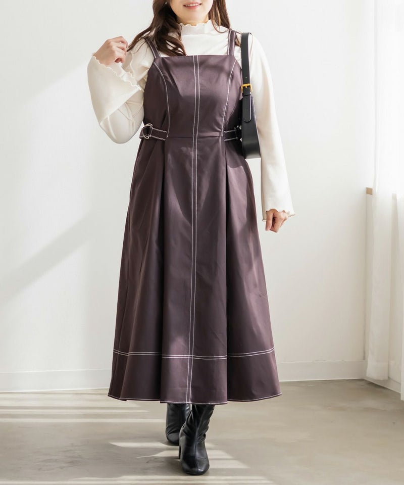 3Lサイズを着てほどよくゆとりがあり、窮屈感のないちょうどいい着心地です。配色ステッチが全体を引き締めてくれるので、シンプルながらもスタイルアップして見えます♪ サイドのベルトでウエストマークできるのも嬉しいポイントです◎しっかりハリのある生地で、シルエットを綺麗に保ってくれてボディラインも拾いにくいです! きれいめにもカジュアルにも使えるデザインで、1枚でコーデが完成します。