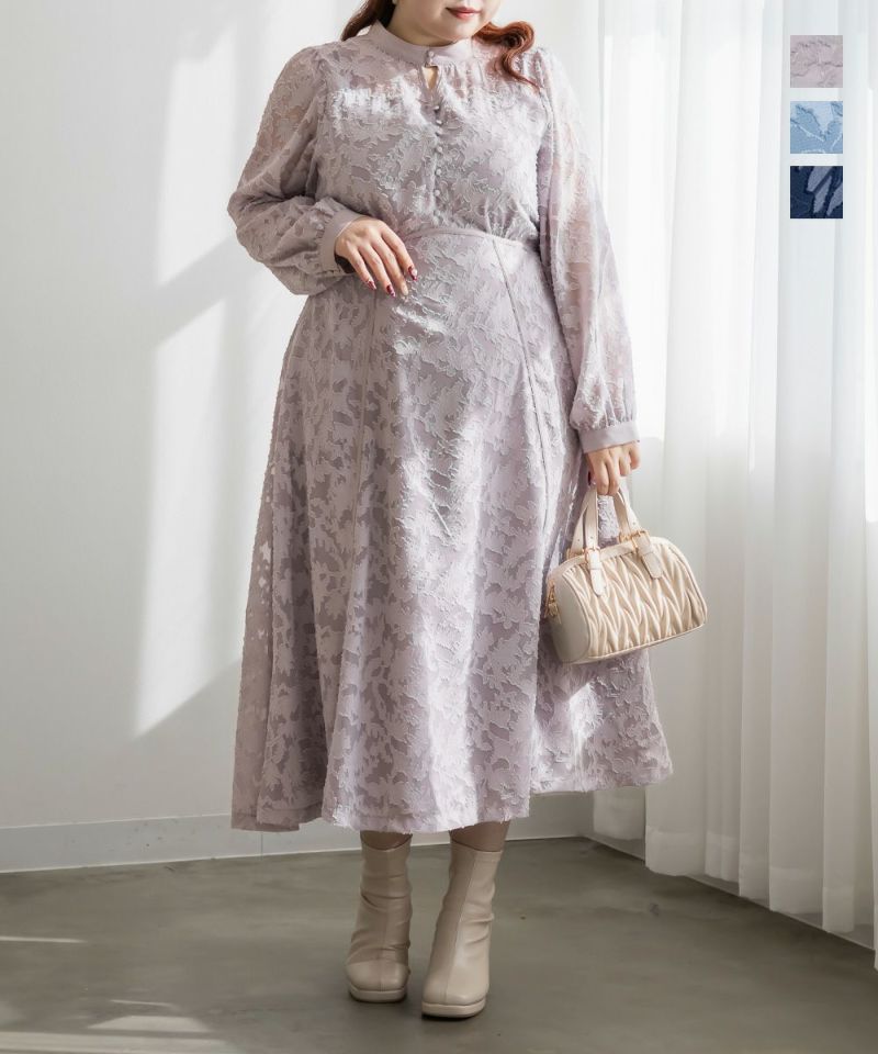 大人っぽい花柄で透け感のあるジャガード織のような表地生地。透けている部分と柄の部分で違った表面感のある上品な素材です。身頃部分は伸縮性のないさらりとした肌触りの裏地付きです。(デコルテ&袖は裏地無し)