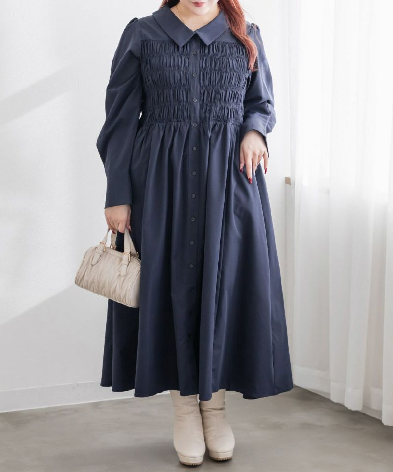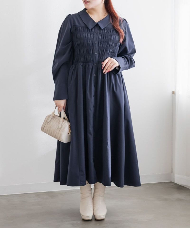 好感度高めな印象になれるなシャツ襟デザインのワンピース。シンプルなシャツワンピースとちがいフェミニンな雰囲気もあるから、おでかけに着ていきたくなるデザイン。ブーツや品のあるバッグと合わせた大人っぽい着こなしがおすすめ。ロング丈でスタイルアップできるバランスだから、スニーカーやローヒールシューズとも相性良し◎
