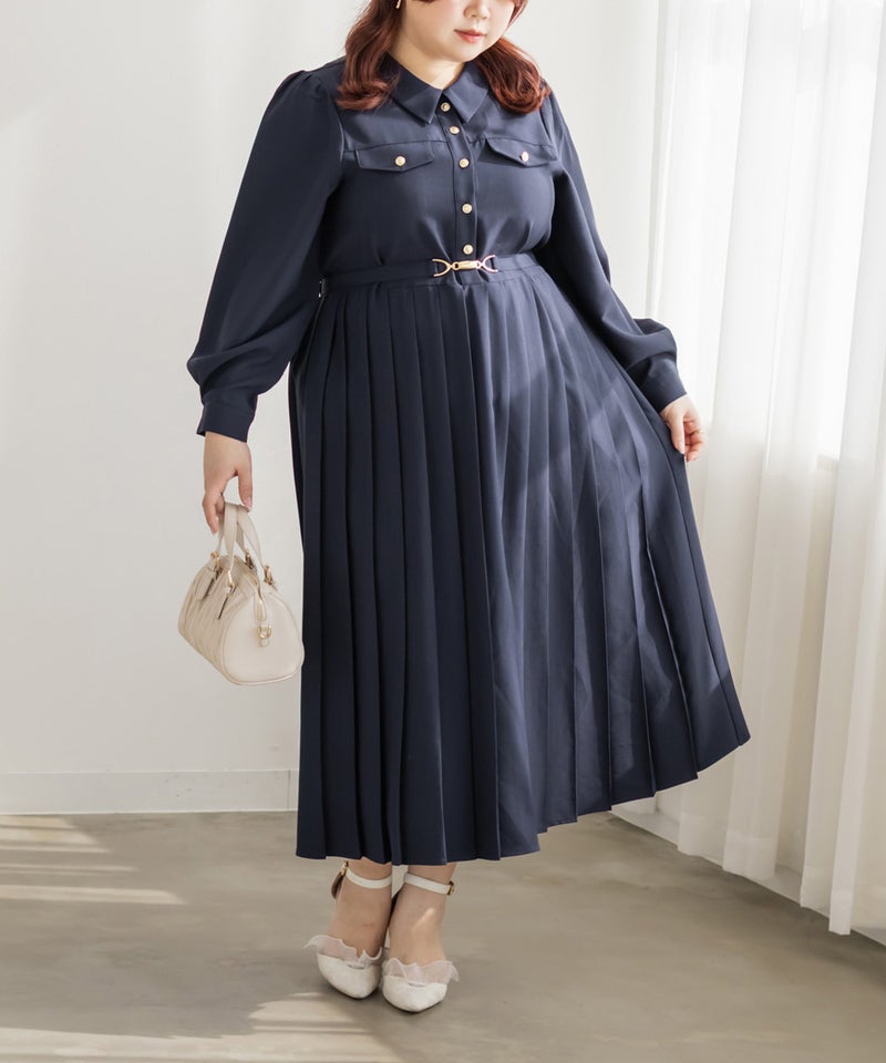 3Lサイズを着てみて丁度いいサイズ感でした。いつも通りのサイズ選びで問題なさそうです。ウエストは柔らかい総ゴムだから窮屈感のないストレスフリーな着心地◎ウエストベルトでキュッとくびれメイクして、メリハリのある女性らしいシルエットに。腰まわりやお腹まわりはプリーツのおかげでボディラインも気になりにくいのが嬉しいです!さらっと上品で大人っぽいデザインだから、1枚もっておけばちょっとしたお呼ばれなどでも活躍できそう!