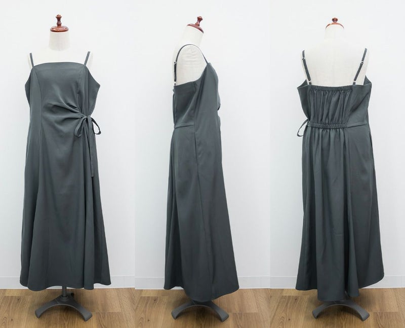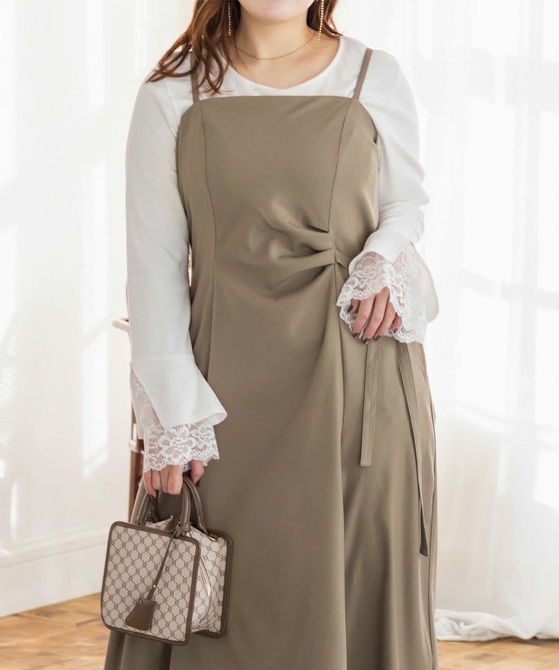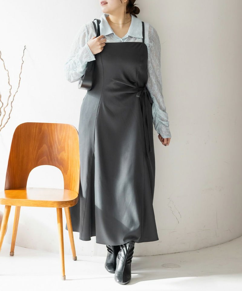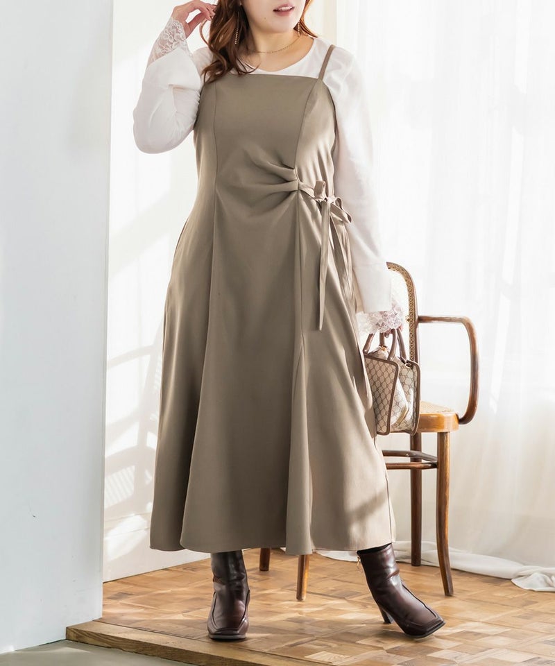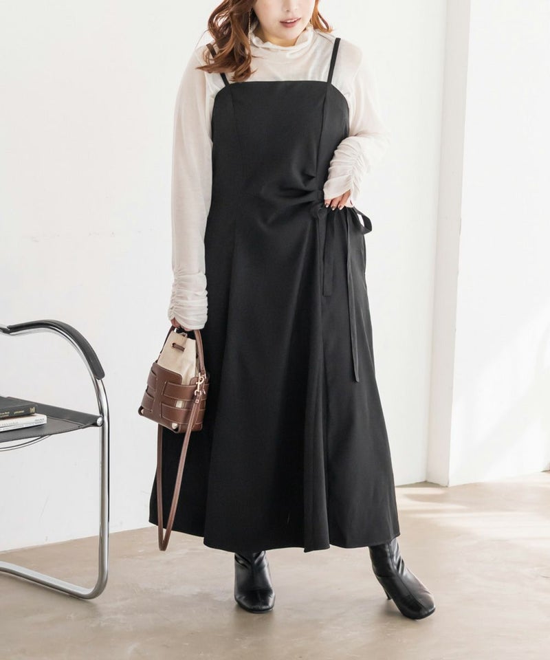 3Lサイズでちょうどよく、いつも通りのサイズ感でした。すっきりしたシルエットですが、ちゃんと身幅があったので窮屈感なくらくちんな1枚でした!ウエスト部分に少しのギャザーと片側にリボンがついているデザインで、シンプルすぎず、大人っぽい雰囲気のワンピースです。パネル切替になっているので、お腹周りも目立たず綺麗なシルエットです!インナー次第でロングシーズン着回せるアイテムです◎