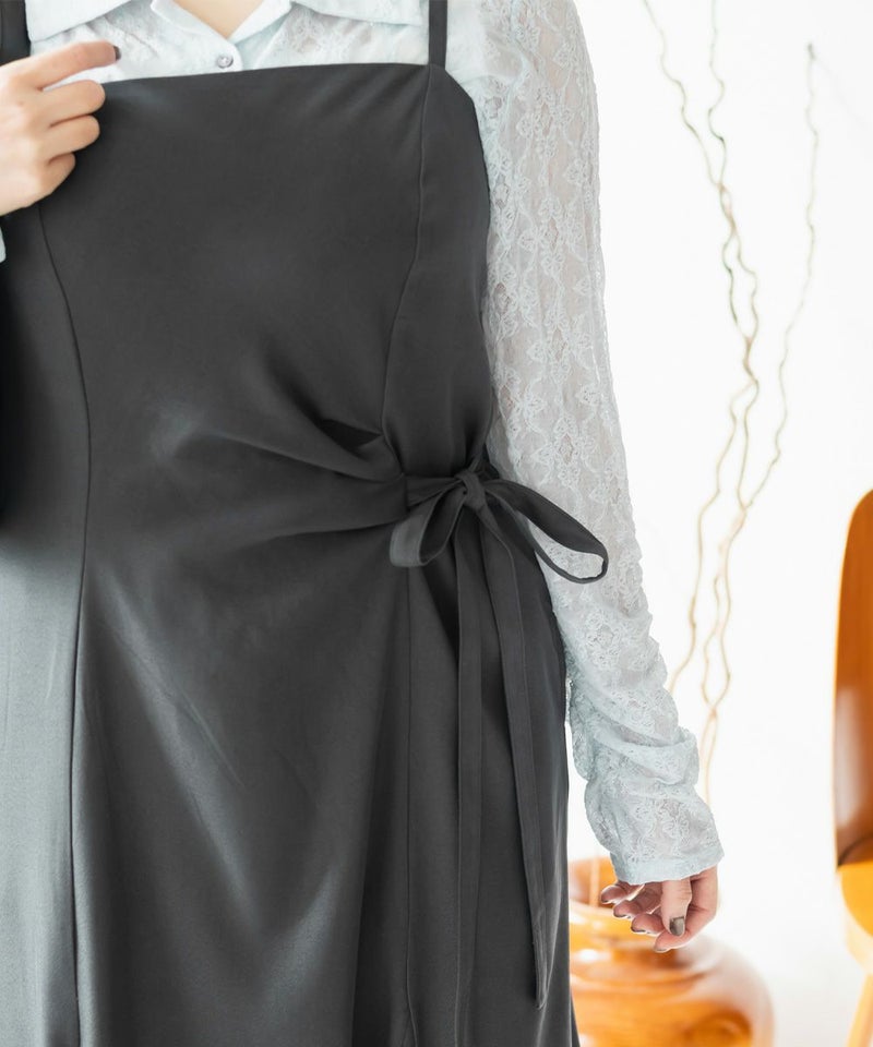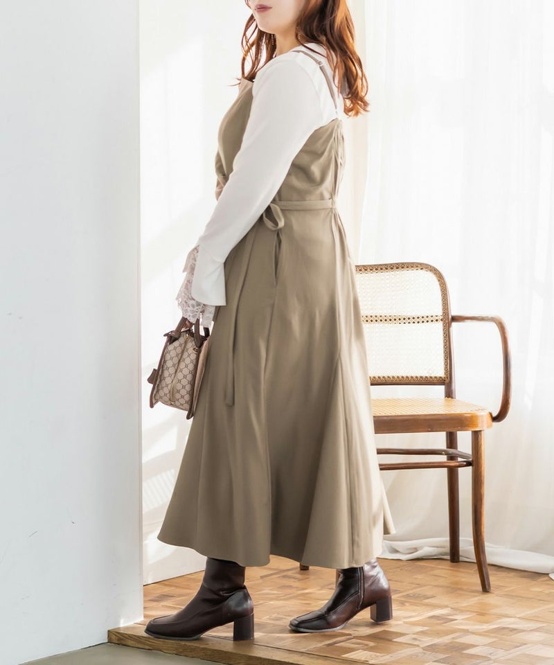 【design】サイドリボンとフロントタックがウエストのメリハリを出してくれ着やせ効果あり。シンプルだけど洗練された印象に。美しく女性らしいシルエットがスタイリングに縦ラインを生み、スタイルアップを叶える。【material】程よい厚みでオールシーズン着用可能。透け感がないので1枚で安心して着用できる。【styling】合わせるインナー次第で様々なスタイルを楽しめます。シアーアイテムと合わせ、抜け感を出し大人っぽく仕上げるのもおすすめ。取り入れるだけで洗練された着こなしが即完成◎