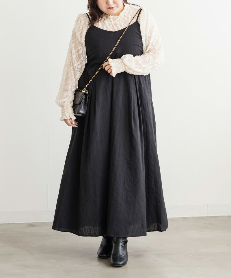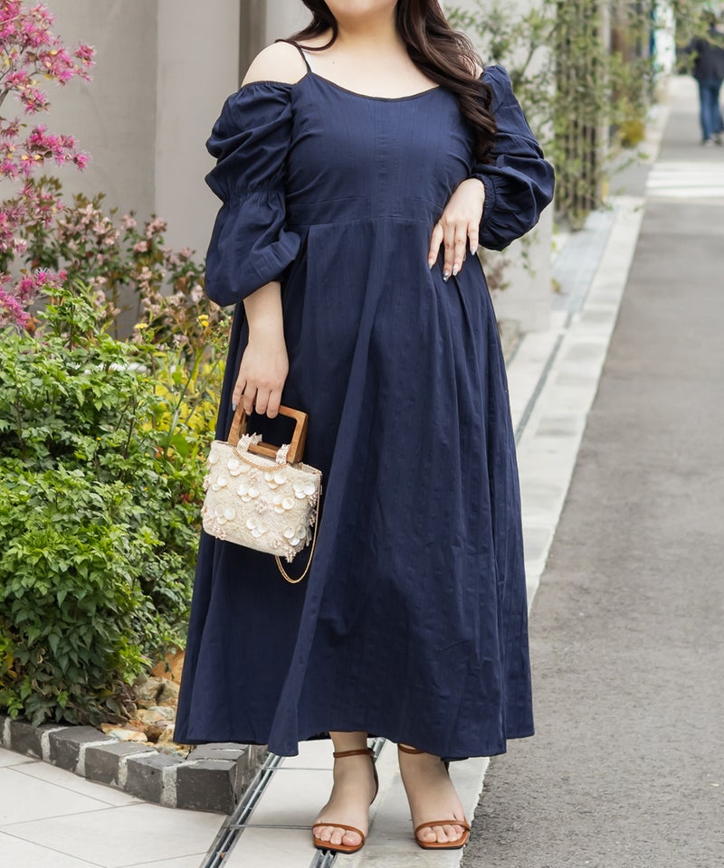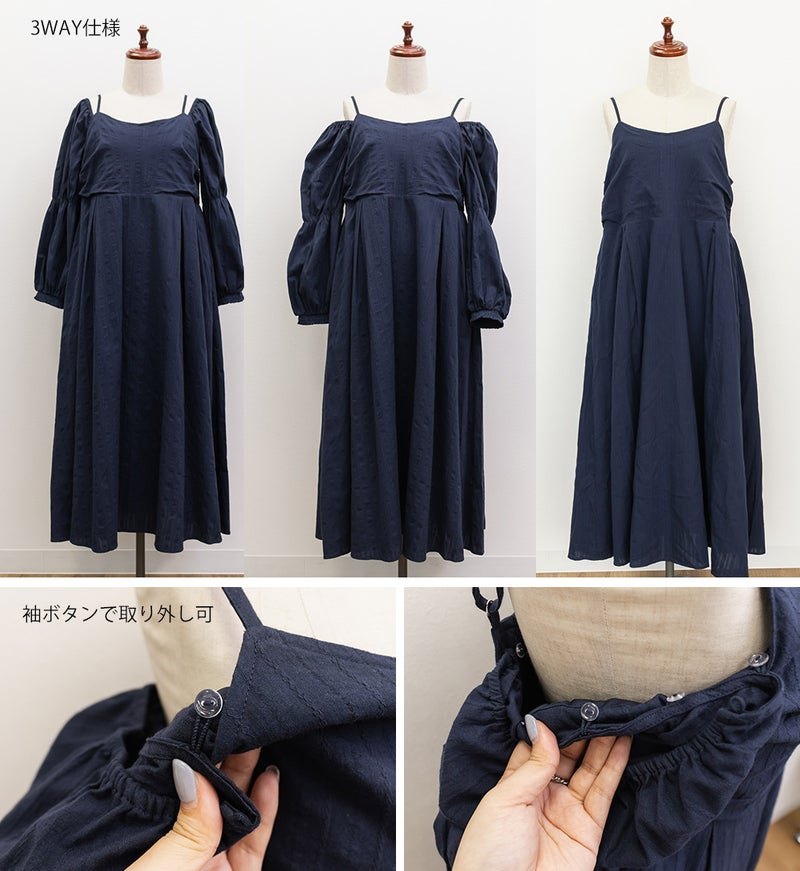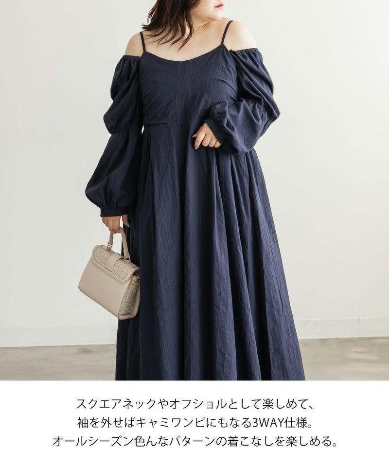 LLサイズを着てぴったりでした。バストは程よくフィット感がありながらも後ろゴム仕様で窮屈感はありませんでした!フィット&フレアでメリハリのあるシルエットで着られます♪落ち感のあるロング丈が縦のラインを強調してくれる花柄ワンピースで、袖は3WAY仕様になっていてオフショル・オンショルにしたり、袖を外してキャミワンピにしたりと気分やシーンに合わせてアレンジ可能です◎ さらりとした軽い生地感で動きやすく、ウエストの切替位置が高めなのでスタイルアップ効果も抜群。デイリーにもお出かけにも着たくなる1枚です!