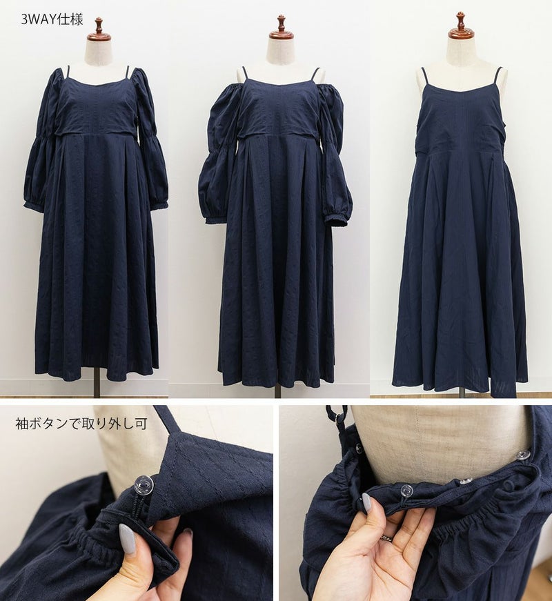 CLETTEオリジナル3WAYスリーブドビーロングワンピース CLETTEオリジナル3WAYスリーブドビーロングワンピース