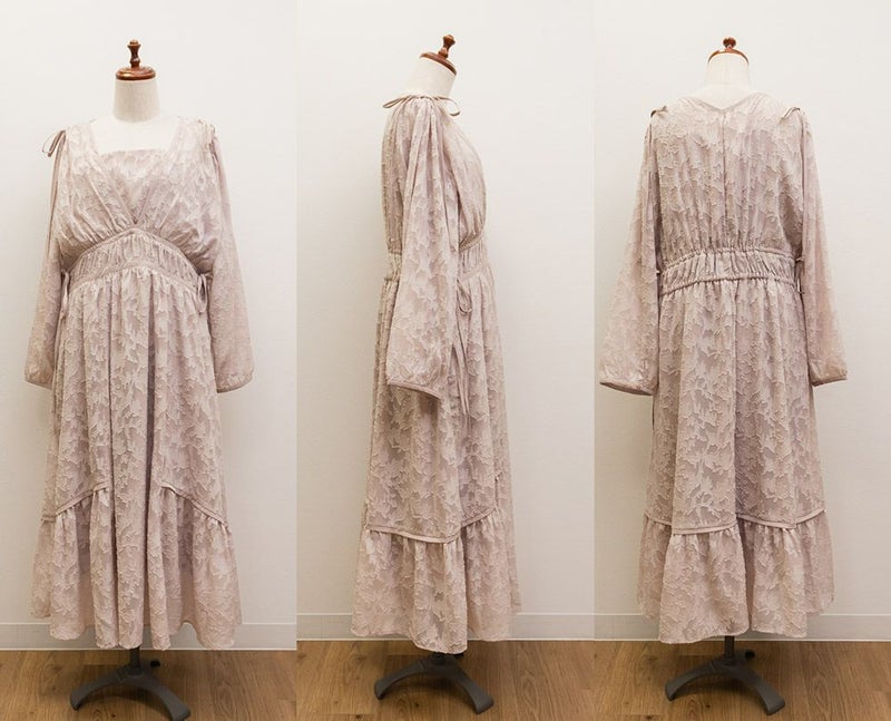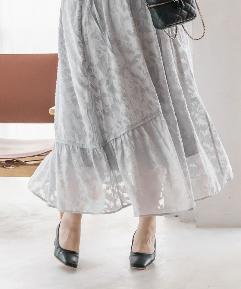 普段のお出かけにはもちろん、ちょっとしたフォーマルシーンにも使える上品で華やかなデザイン。ヒールシューズと合わせれば綺麗めな印象がアップします。ロング丈だからローヒールシューズと合わせてもスタイルよく着る事ができます。