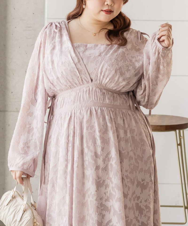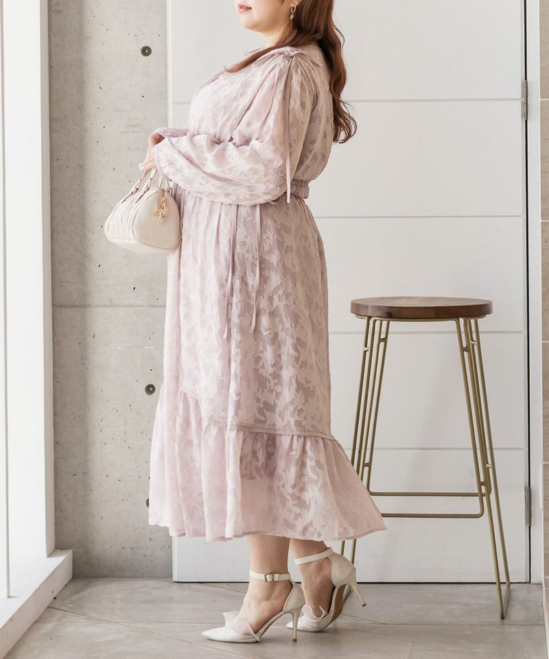上品なフェミニンスタイルが着るだけで完成する美シルエットのワンピース。上半身をすっきりとさせるV字デザイン、足長効果のあるハイウエスト切替、二の腕をカバーするふんわりとした袖デザイン、着やせポイントがたくさん入った優秀な1枚。