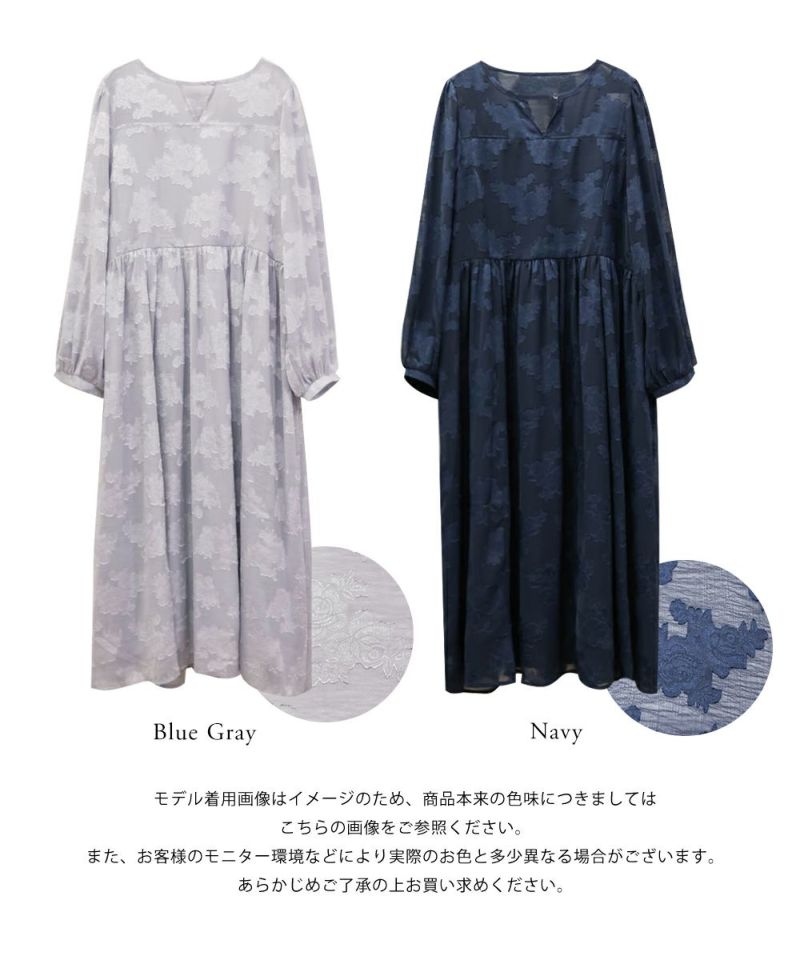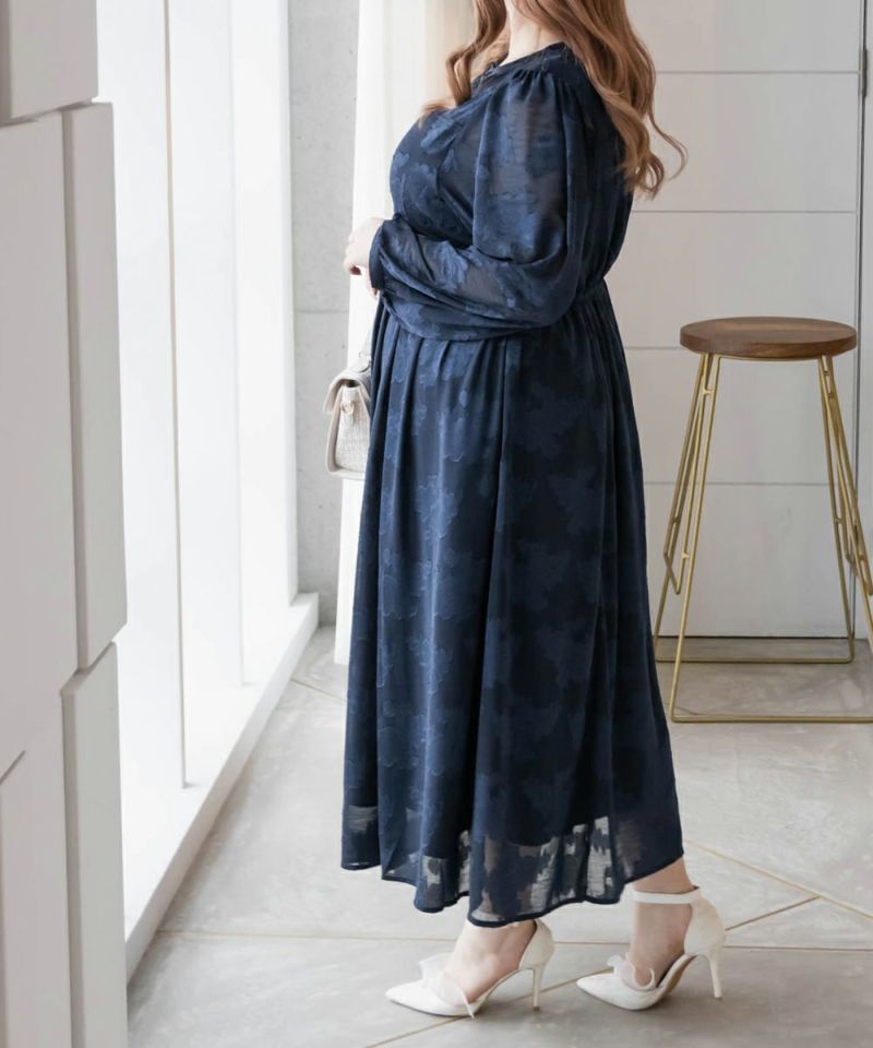 クレット 大きいサイズ セミオケ ドレス 綺麗め デート服 フェミニン お呼ばれ CLETTEオリジナル★デザイン襟花柄ジャガードシアーワンピース