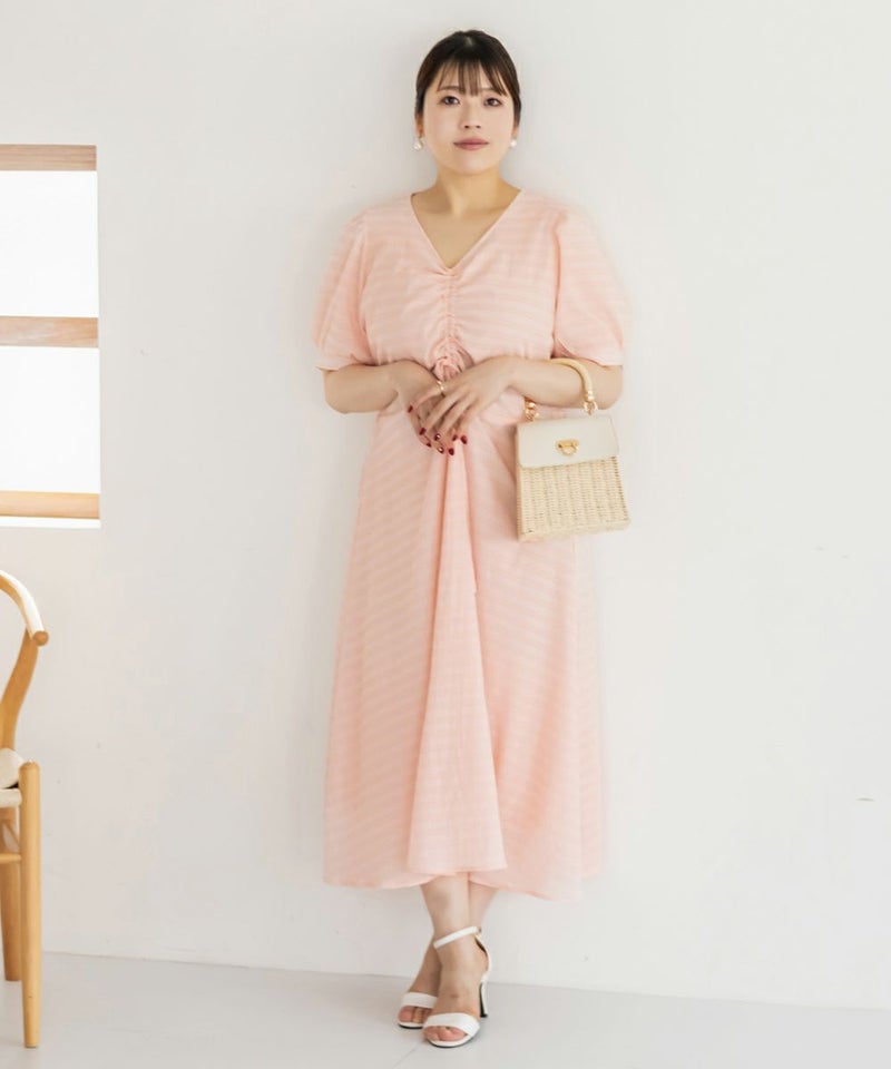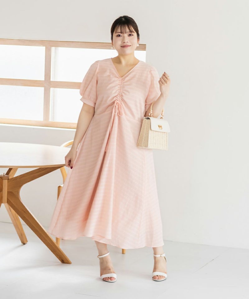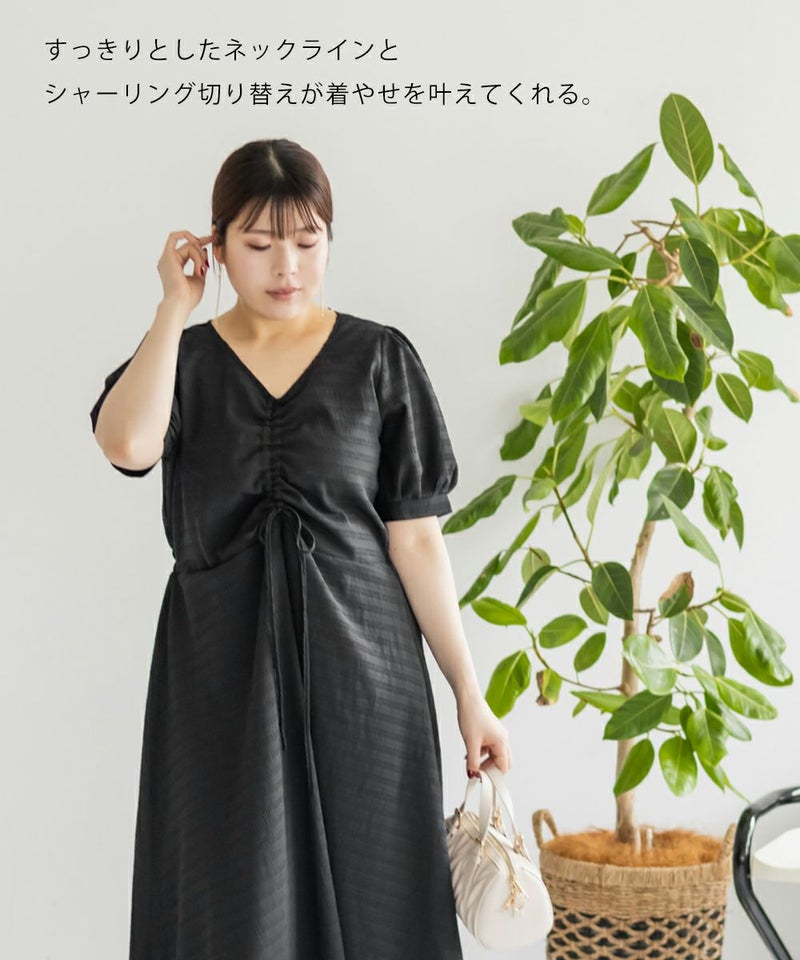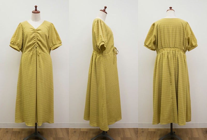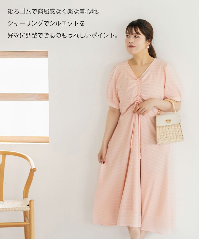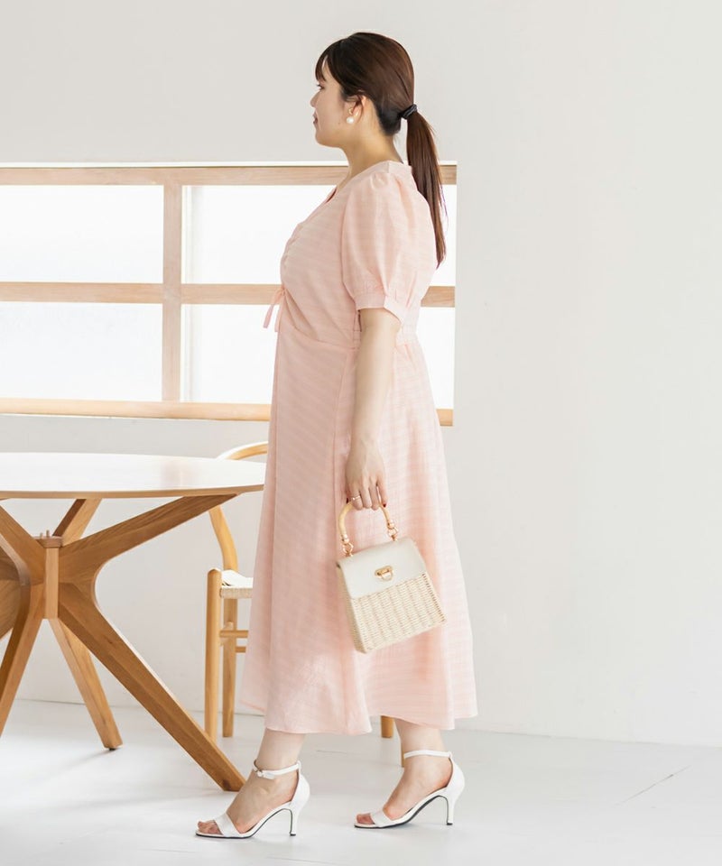3Lサイズを着用しました!全体的に締め付け感はなく、ウエストは後ろゴムでらくちんなのも嬉しい♪スカート部分はふんわり広がるフレアシルエットで、体型カバーも叶うデザインです!胸元のシャーリングリボンは調整できるので、自分の好みのバランスに合わせられるのも嬉しいポイント。さらっと軽やかな生地感で、暑い日でも快適に着られそう!デートにもお出かけにもぴったりな、ときめきワンピです◎