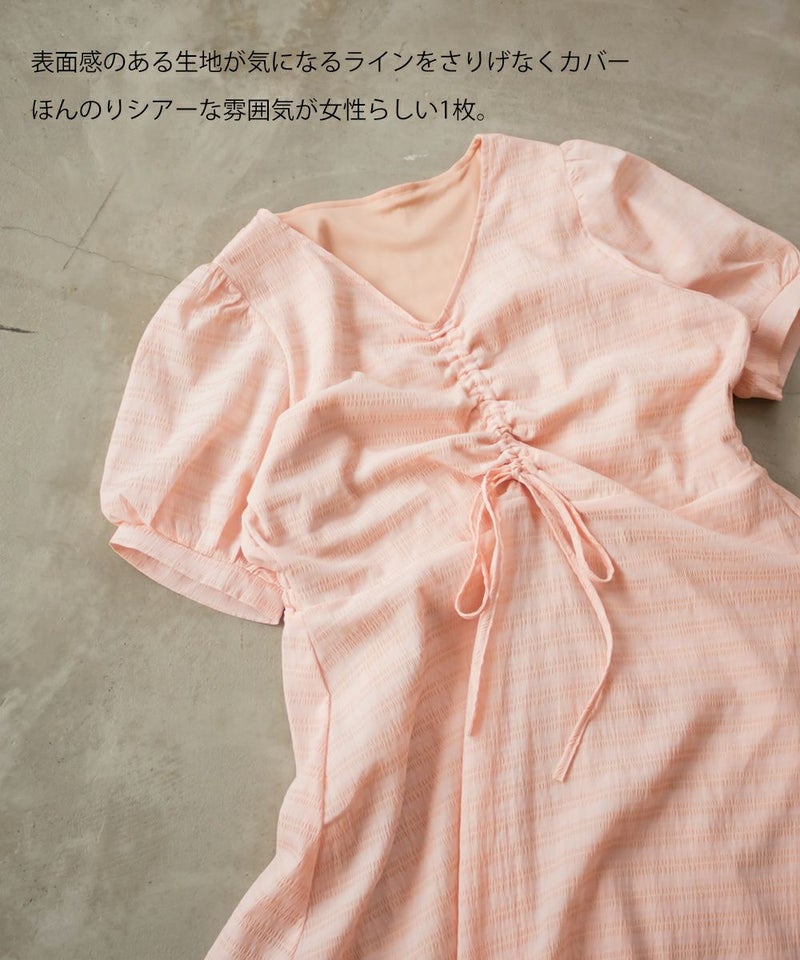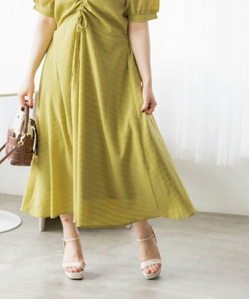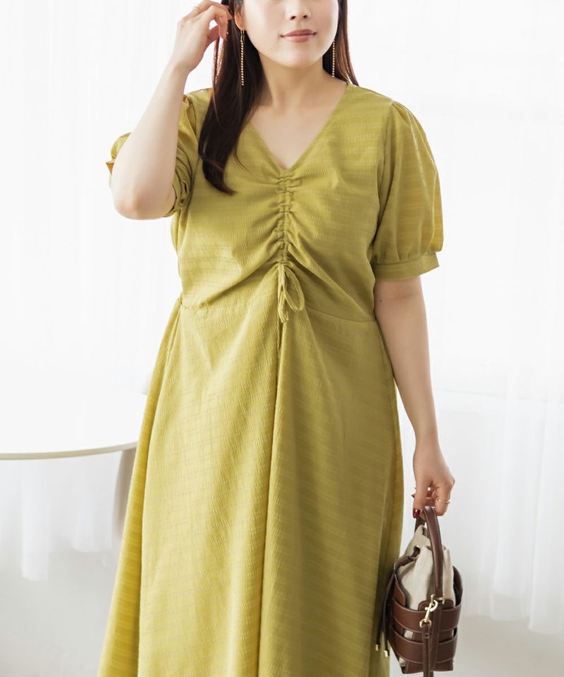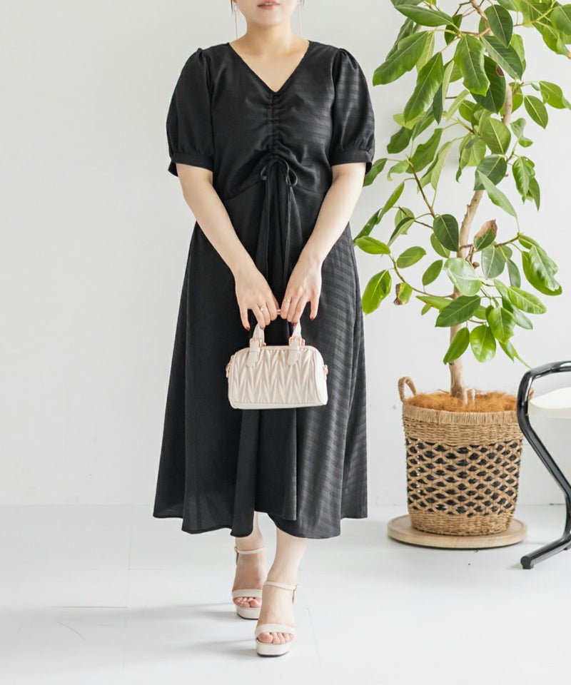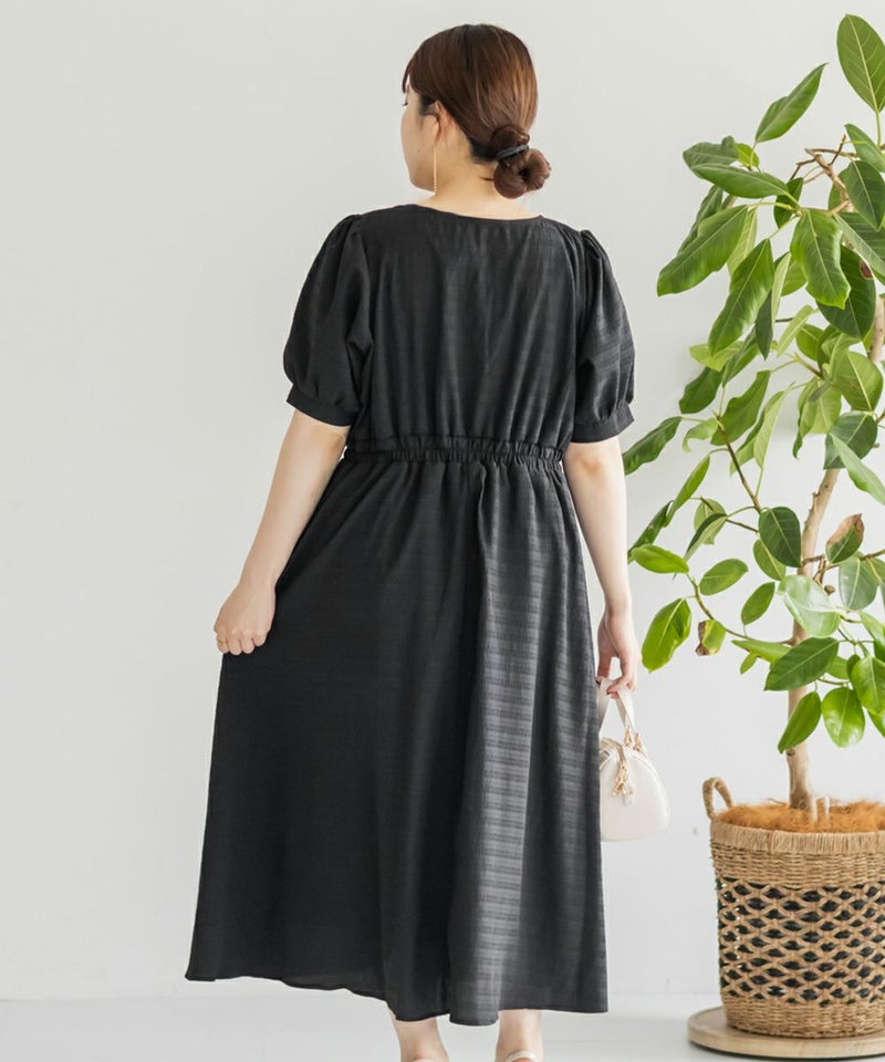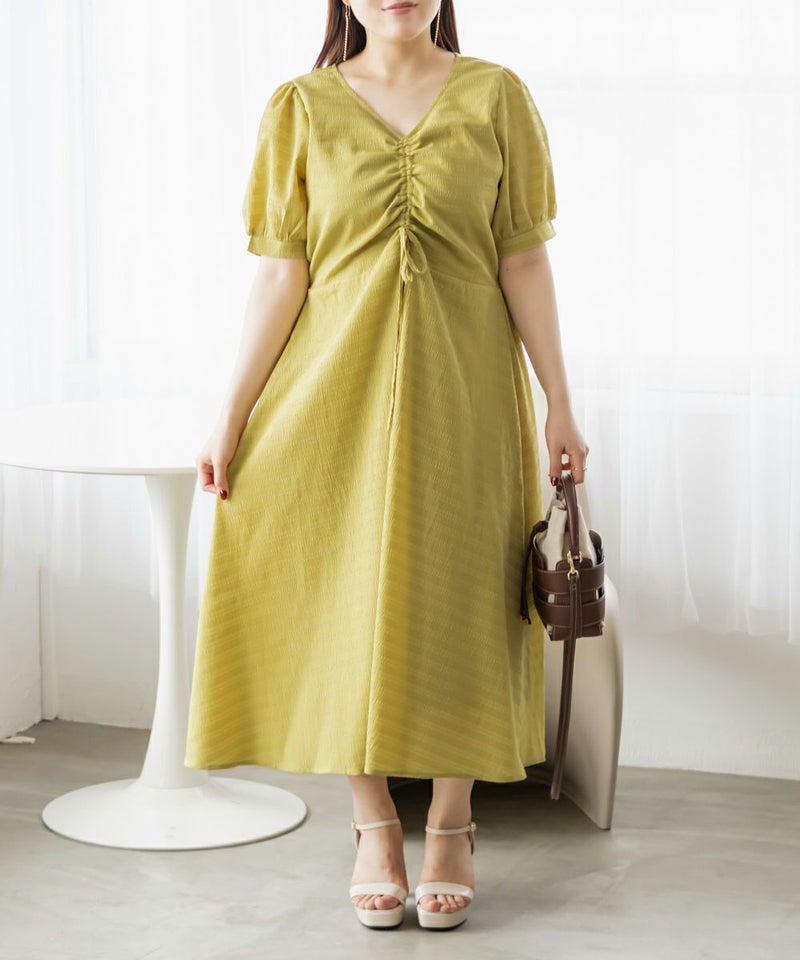 3Lサイズを着用しました!全体的に締め付け感はなく、ウエストは後ろゴムでらくちんなのも嬉しい♪スカート部分はふんわり広がるフレアシルエットで、体型カバーも叶うデザインです!胸元のシャーリングリボンは調整できるので、自分の好みのバランスに合わせられるのも嬉しいポイント。さらっと軽やかな生地感で、暑い日でも快適に着られそう!デートにもお出かけにもぴったりな、ときめきワンピです◎