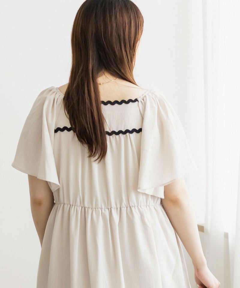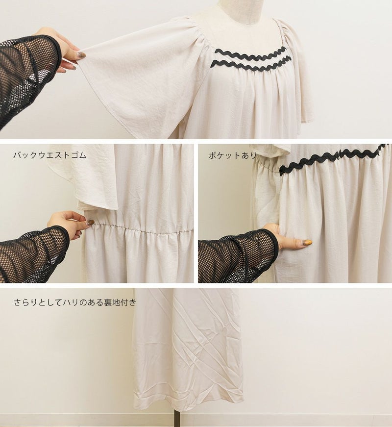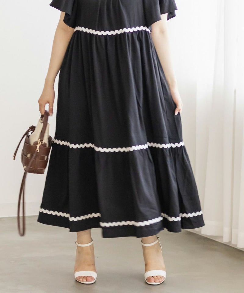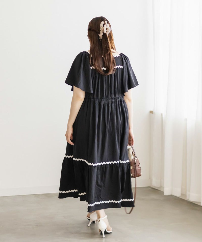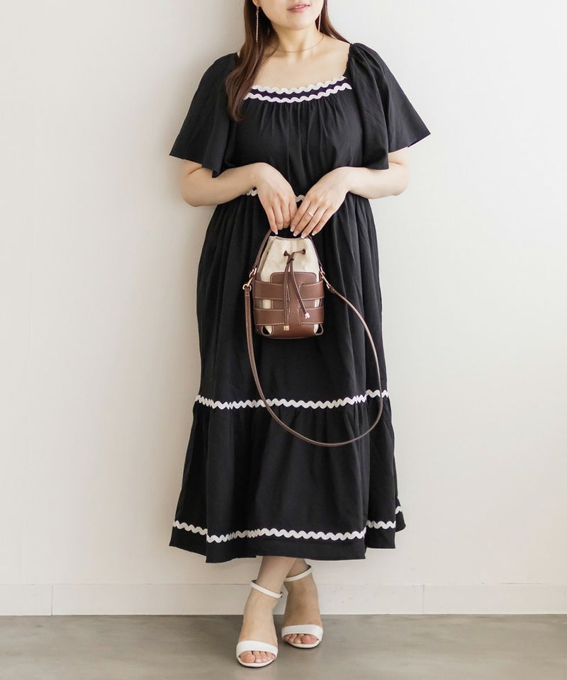 3Lサイズを着用しましたが、程よくゆとりがあり、リラックスして着られました◎ ティアードデザインがボディラインをふわっとカバーしてくれて、体型を気にせず楽しめるのが嬉しいポイント♪ 配色テープが効いていて、1枚でしっかりおしゃれ見え!肩まわりのラインもすっきりしていて、羽織いらずでコーデが決まる、主役ワンピースです。