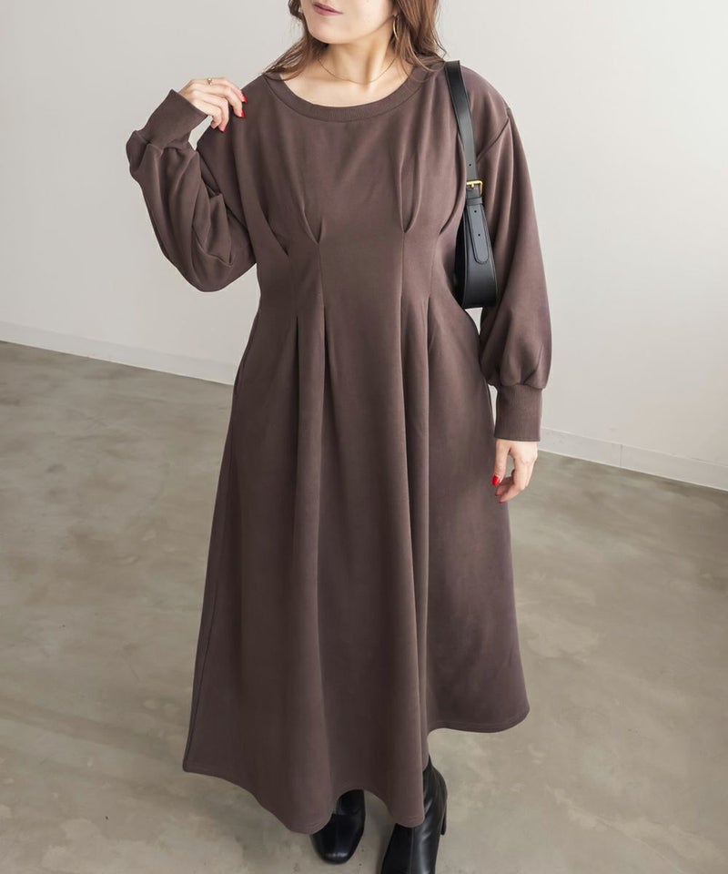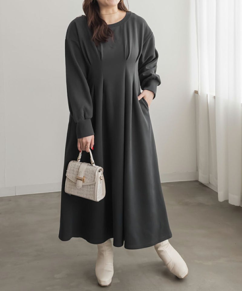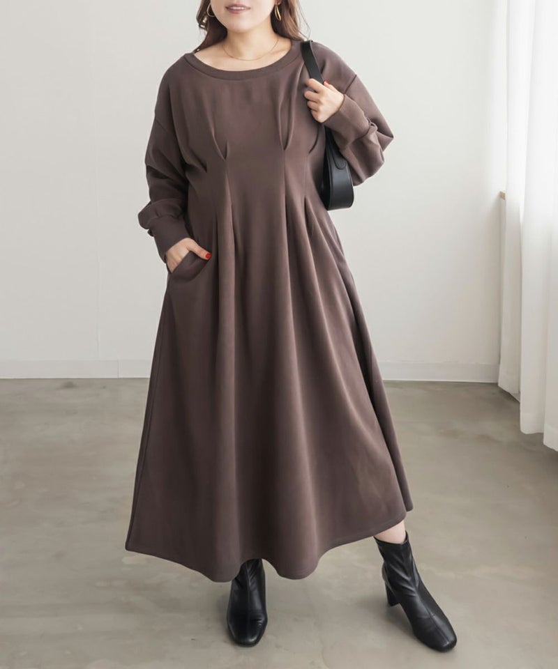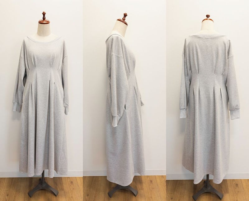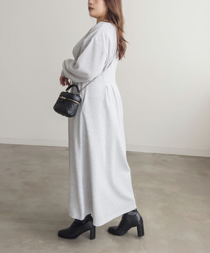 3Lサイズを着てちょうどよく楽な着心地でした!動きやすいスエット素材で着脱も楽々◎程よくハリのある生地なのでボディラインを拾わないのが嬉しい♪ウエストにタックが入っていて、フィット&フレアシルエットになってスエットだけど女性らしく着られます。ブーツやスニーカー、小物使いを変えるだけで違った印象に変化できます。頑張りすぎないおしゃれな雰囲気のスタイルをしたい方にぜひおすすめしたいです!