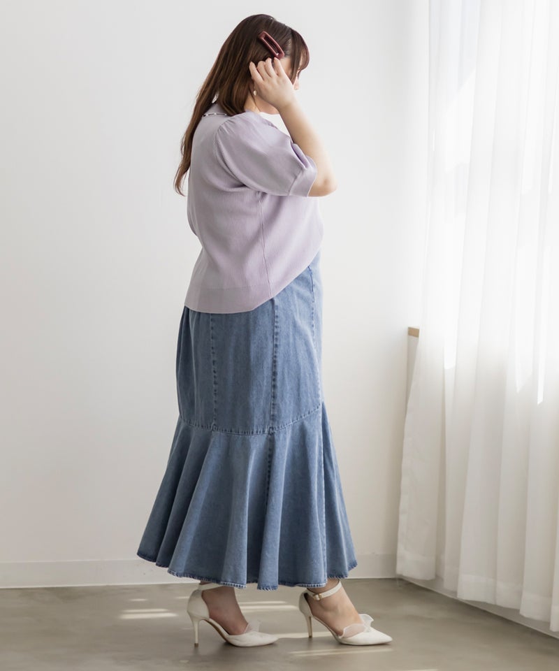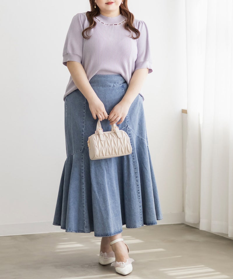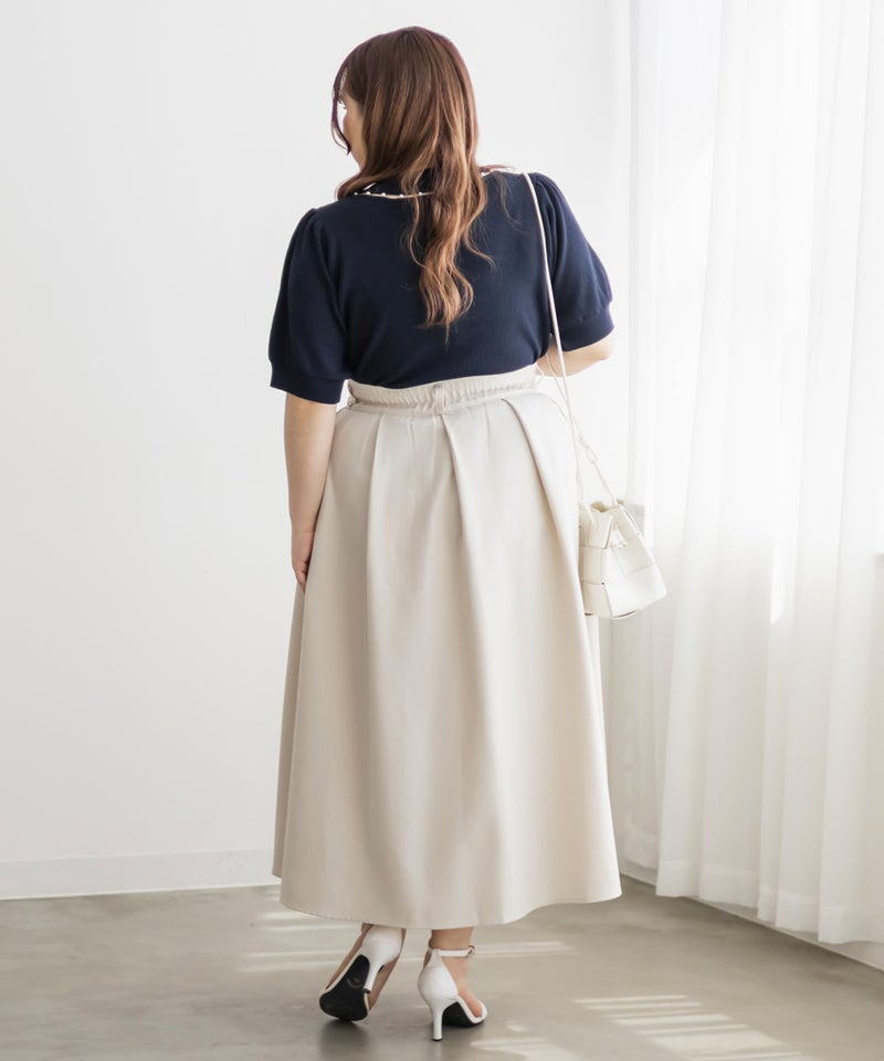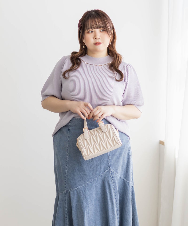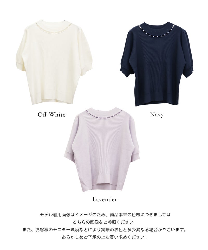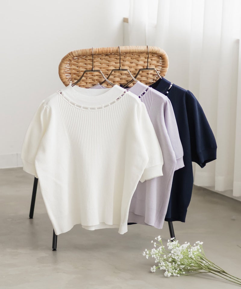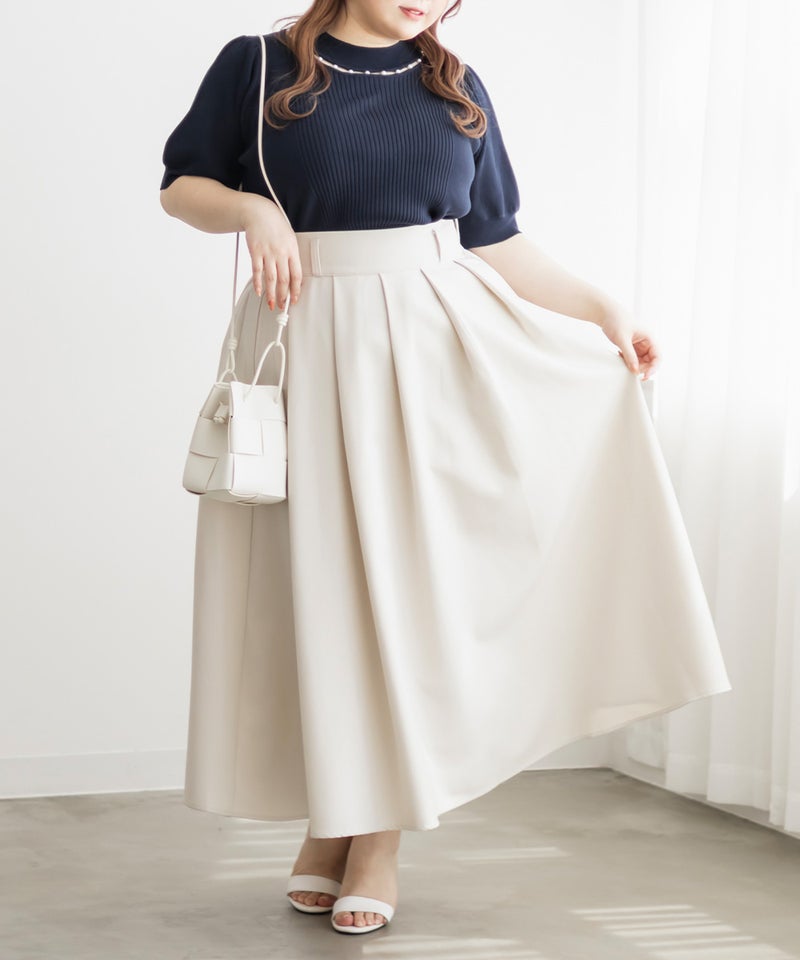 3Lサイズを着ていつも通りのサイズ感でした。首元にあしらわれたパールが華やかさをプラスしてくれて、アクセサリーいらずで一気に上品な印象に♪サマーニット素材なので身体にほどよくフィットして、着心地も抜群です◎チクチク感のない柔らかなニット生地で、長時間着ていても快適でした!袖口や裾もしっかりとしたつくりで、上品見えして、オンオフ着回ししやすいのも嬉しいポイント。着用感はちょうどよく、ジャケットやジャンスカのインナーとしても使いやすい万能アイテムです。