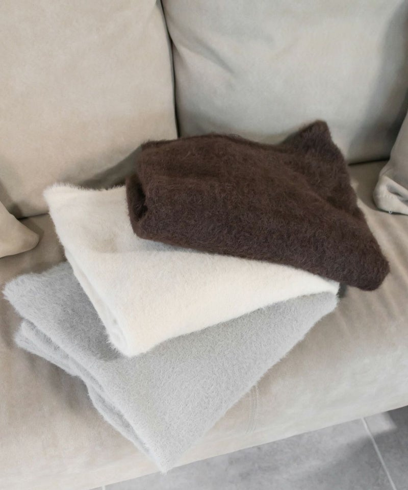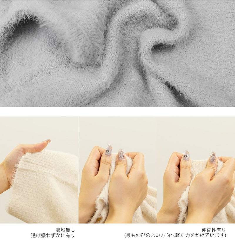 柔らかく上品な程よい毛足のシャギーニット素材。