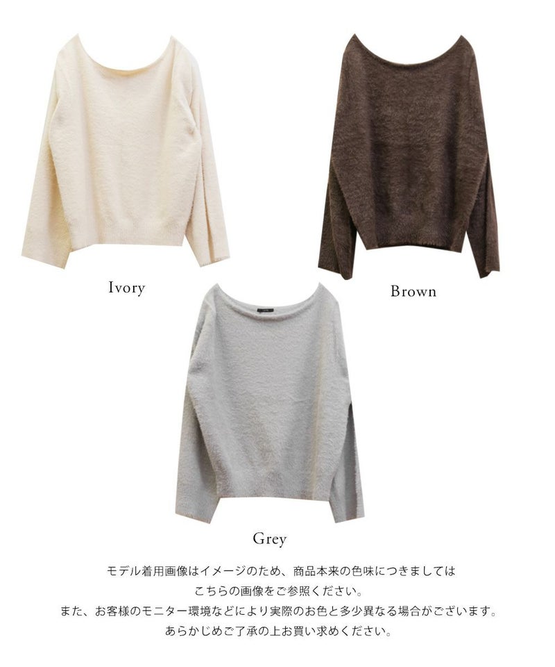 上品な女性らしさのあるシャギーニットプルオーバー。ボートネックとして着ても、肩出ししても着られる自分好みに変化できるネックデザイン。タック入りで肩の丸みをカバーしてこなれ感のあるデザインに。シンプルだけど着映えする1枚。