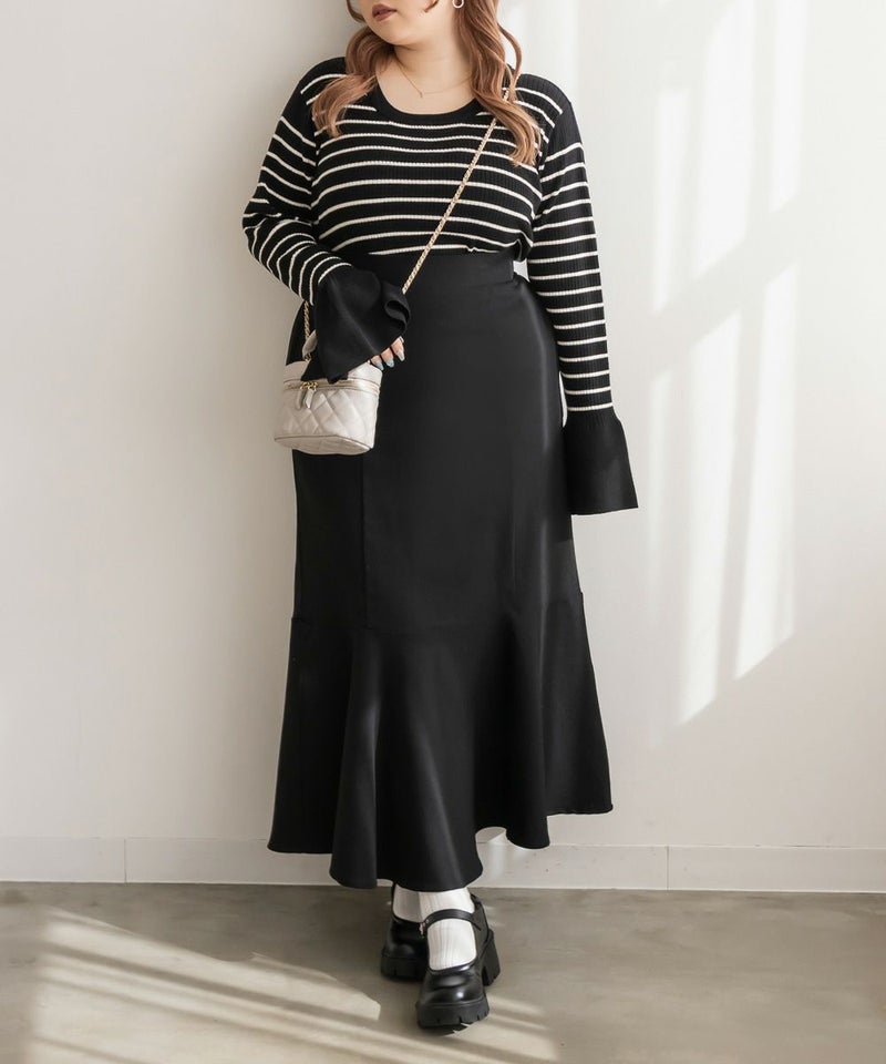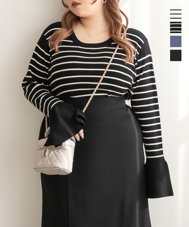 3Lを着て丁度いいサイズでした。手元にスリットが入ったデザインで手首が細く、大人っぽい印象になれます!綺麗にあいたクルーネックになっているから、ワンピのインナー使いとしても相性が良かったです!柔らかくてよく伸びるリブニットなので、着心地も良いのが嬉しいです◎色々なスタイルに合わせやすい、1枚あると便利なニットです!