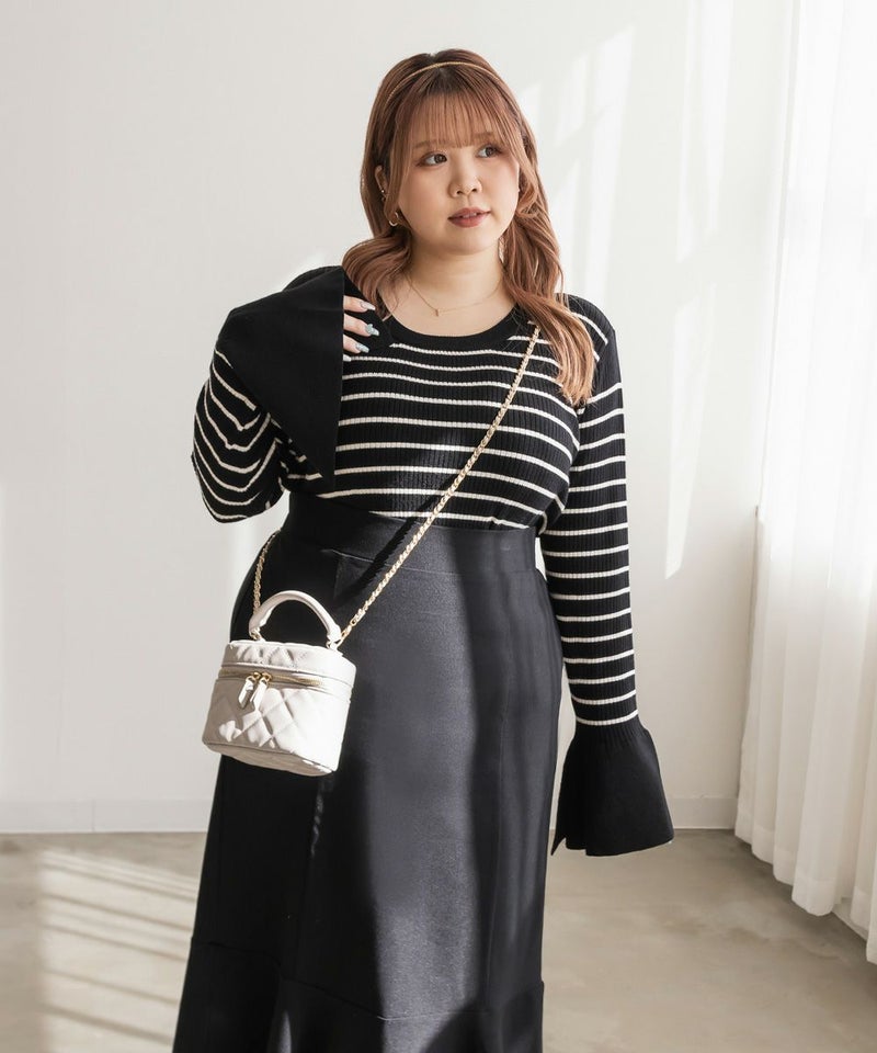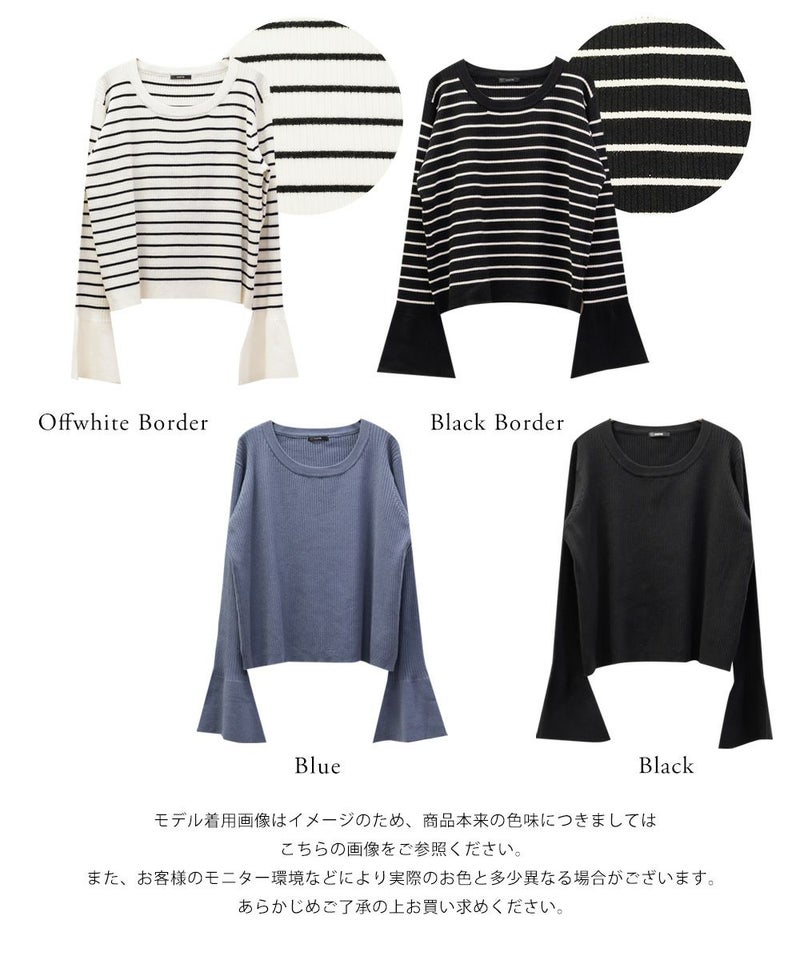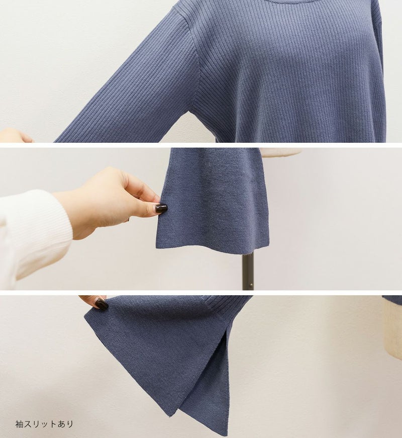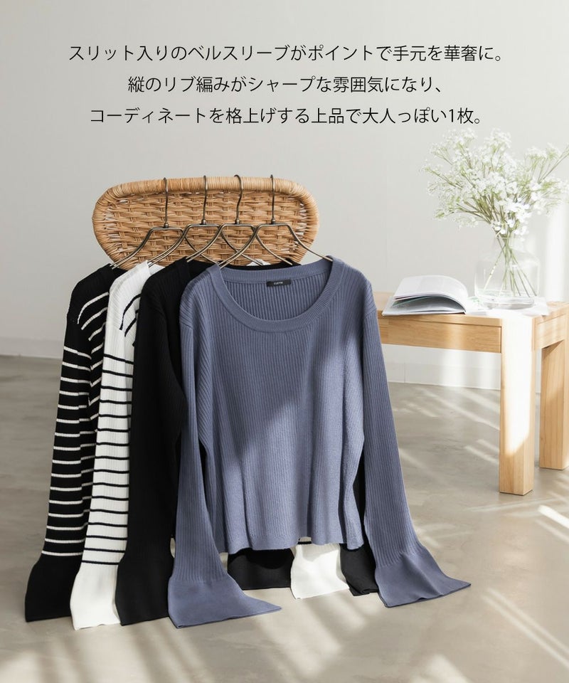 CLETTE オリジナル スリット ベルスリーブ リブ ニット 長袖 秋冬 トレンド カジュアル インナー CLETTEオリジナル★スリットベルスリーブリブニット