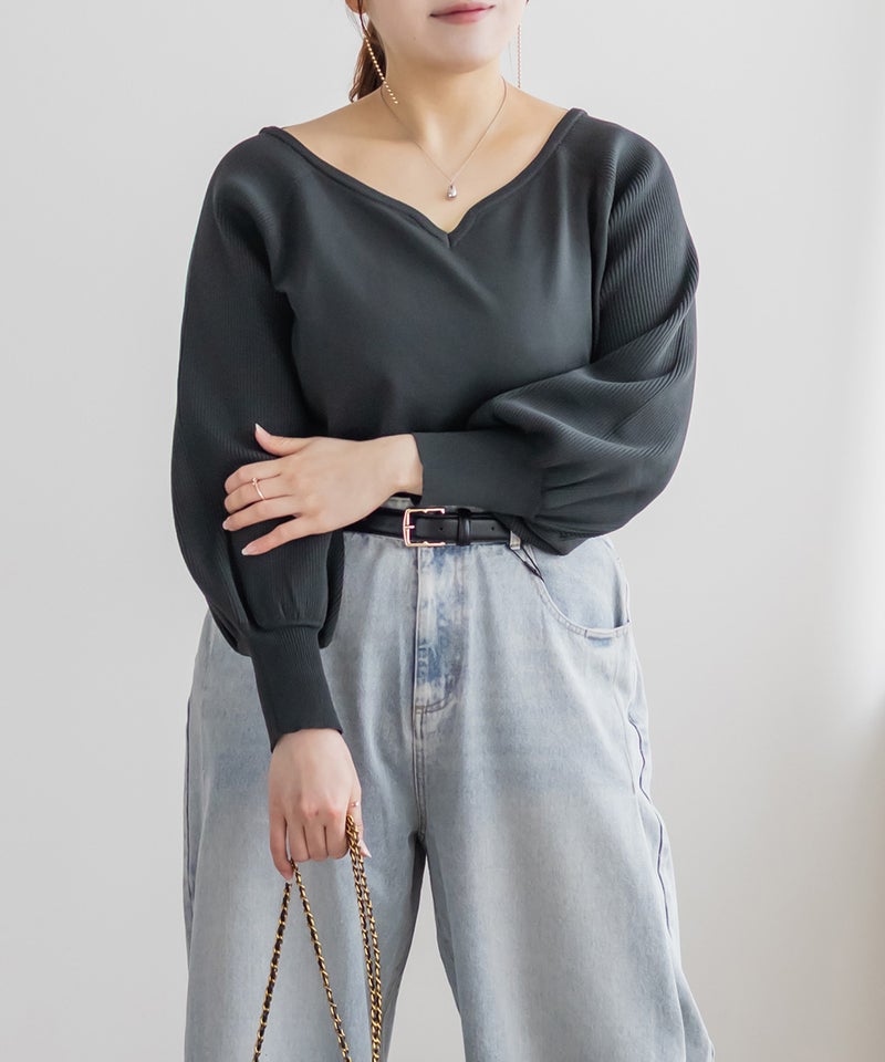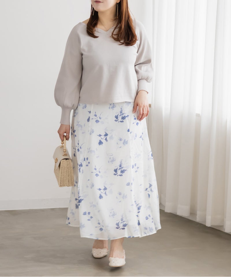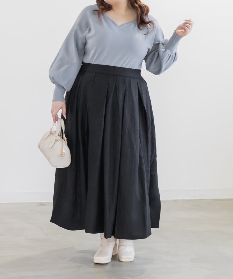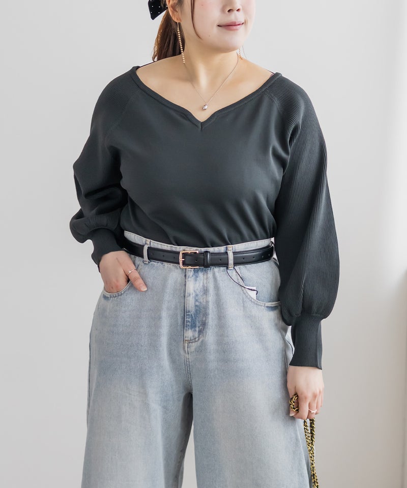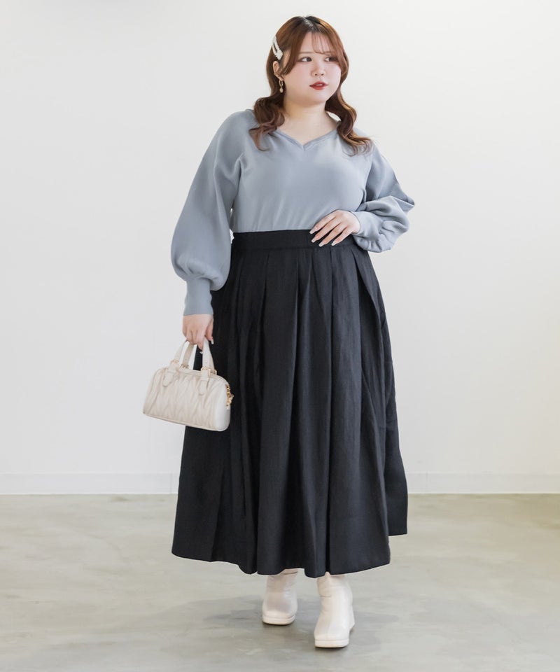 3Lを着て、全体的にちょうどいい着用感で、ニットなので伸びがよく窮屈さは感じませんでした。ハートネックがデコルテをきれいに見せてくれて、顔まわりに自然な抜け感が出るのがポイントです。ウエストがほんのりシェイプされているので、アウトで着てもシルエットがだらっとせず、すっきり着られました◎
