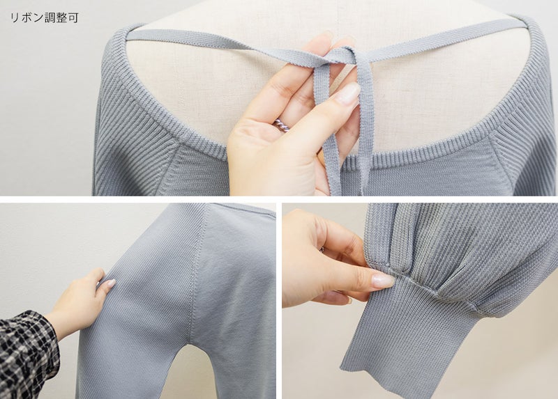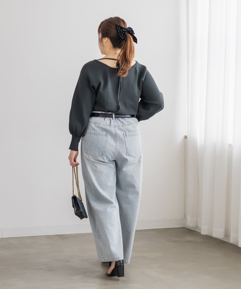 バックのリボンは締め具合を調整できるので、自分好みのフィット感にできるのも嬉しいです。デニム合わせでカジュアルにも、スカート合わせで大人可愛くも着られて、コーデの幅が広がるトップスだと思いました♪