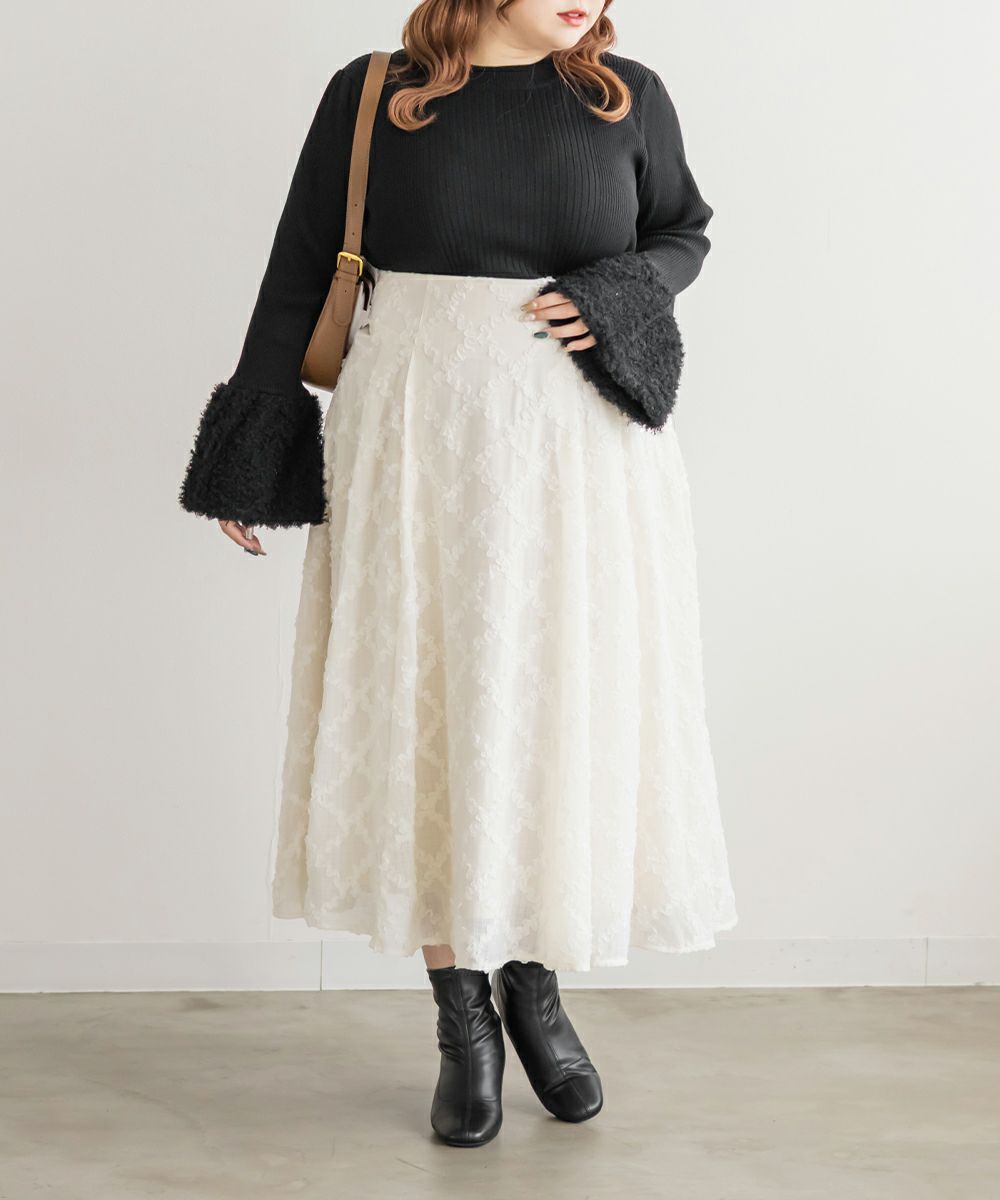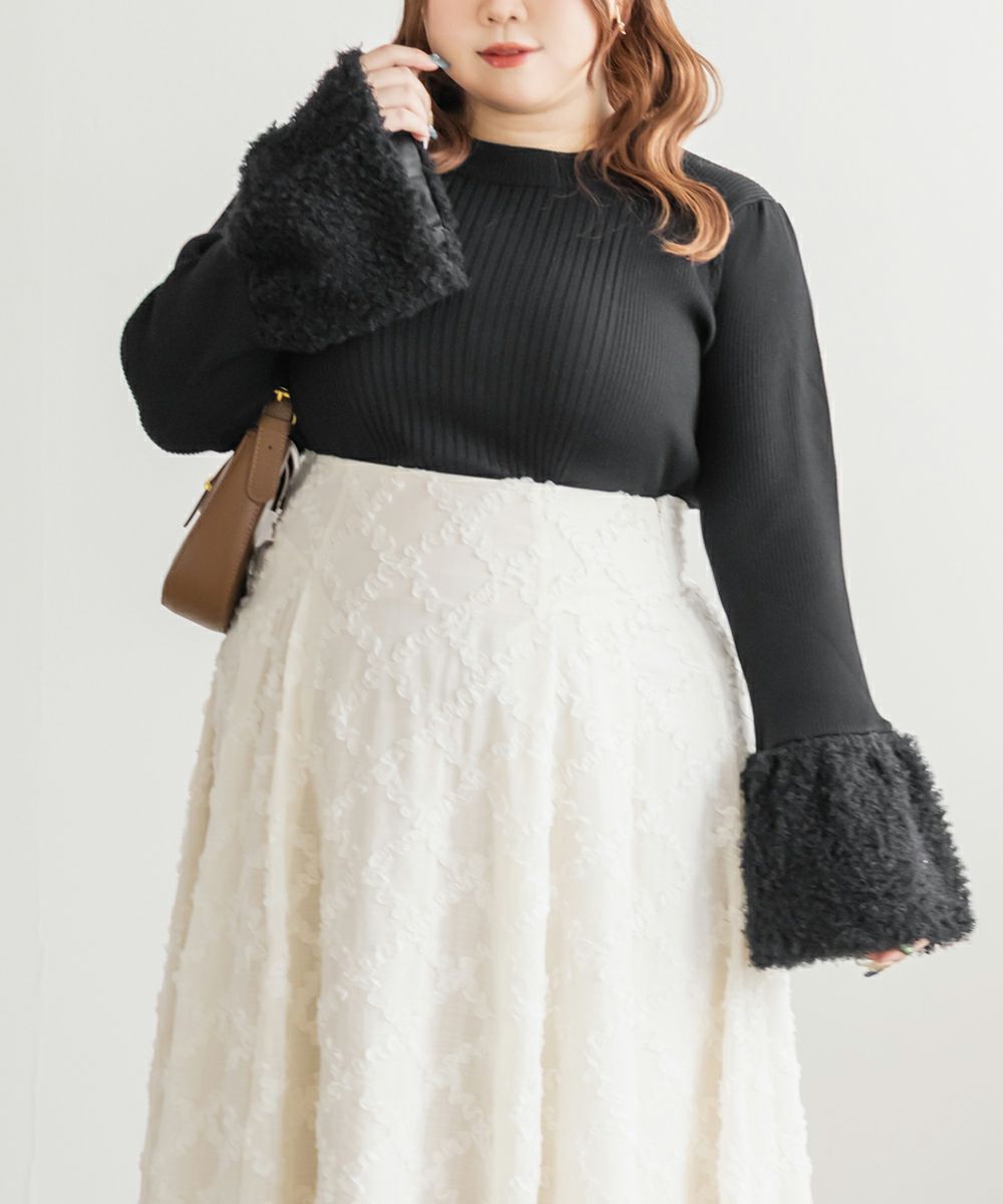 3Lを着て丁度いいサイズでした。伸びの良いニット生地で、着心地も抜群です!リブの切替がポイントで見頃を華奢に見せてくれる効果もあります◎袖のもこもこがとにかく可愛くて、1枚でトップスとしてももちろんワンピースのインナー使いにもおすすめ!手元を女性らしく華奢にみせてくれて、デートやお出かけにピッタリです!パンツでもスカートでもなんでもコーデできちゃうので、この秋冬に着まわしたいニットアイテムです♪