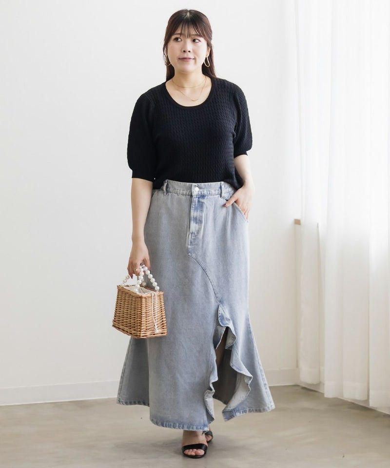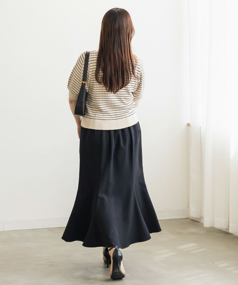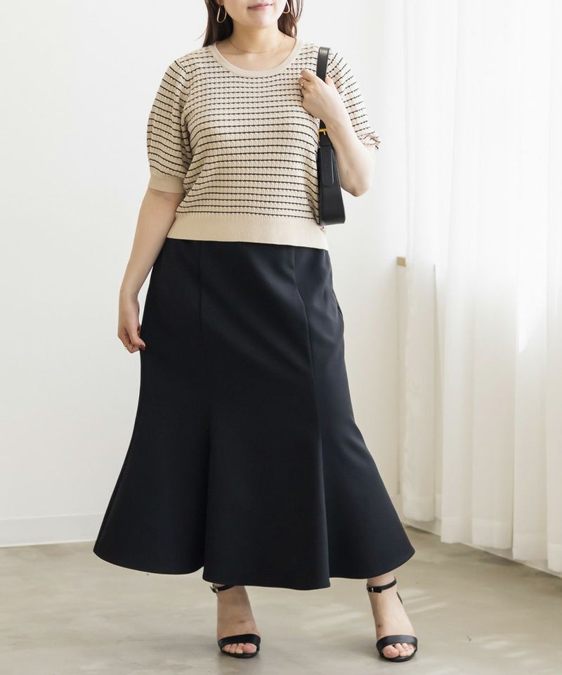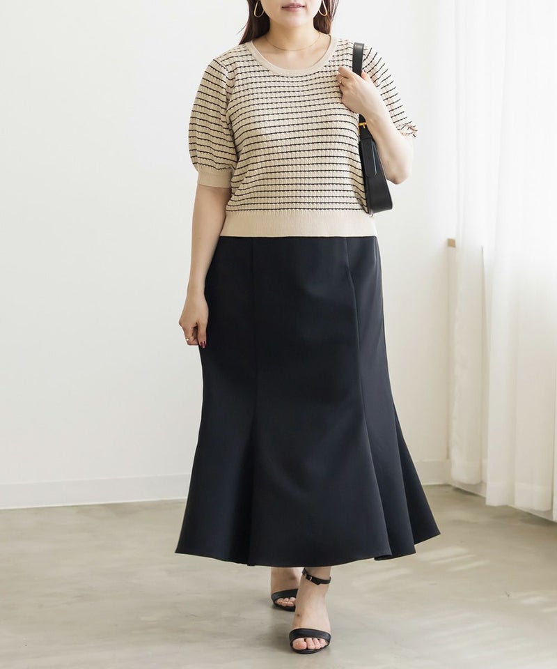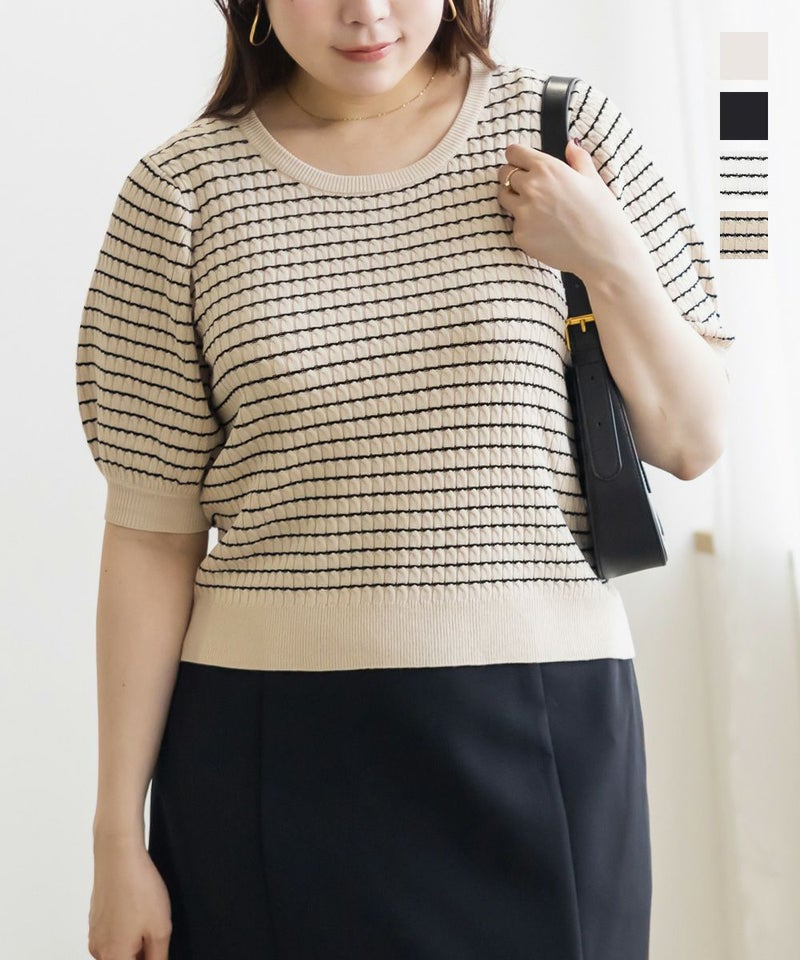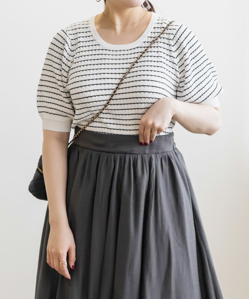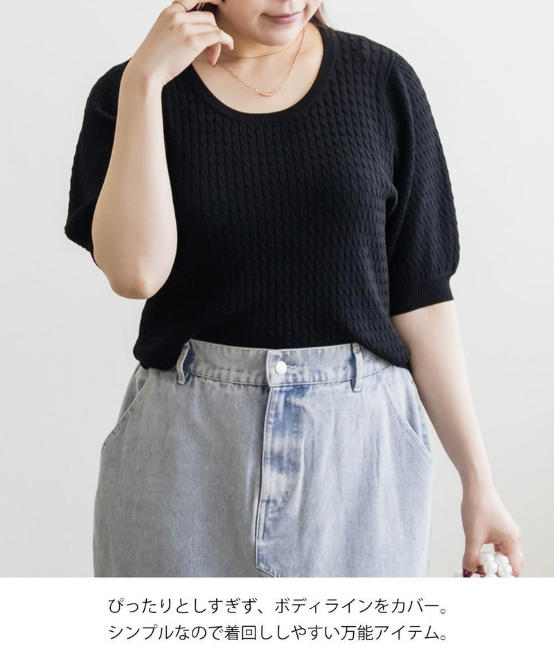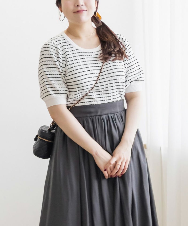3Lを着てちょうどいいサイズ感でした。いつもどおりのサイズ選びで問題なさそうです◎伸びも良くて着心地が良いサマーニットです!縦のラインが強調される編みのデザインがポイントで、シンプルながら抜け感のある大人っぽいアイテムです。袖丈も短すぎず、ピタッとしないサイズ感なのが嬉しい♪さらっと1Tシャツ感覚で着られて、デイリー使いはもちろんお仕事などにもピッタリです!