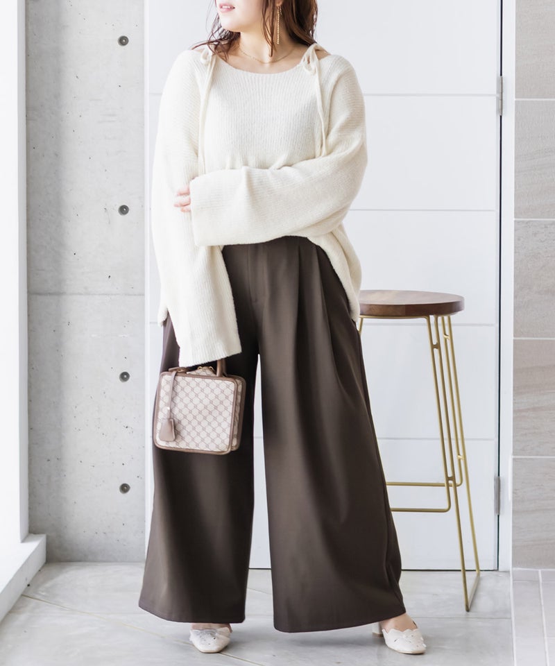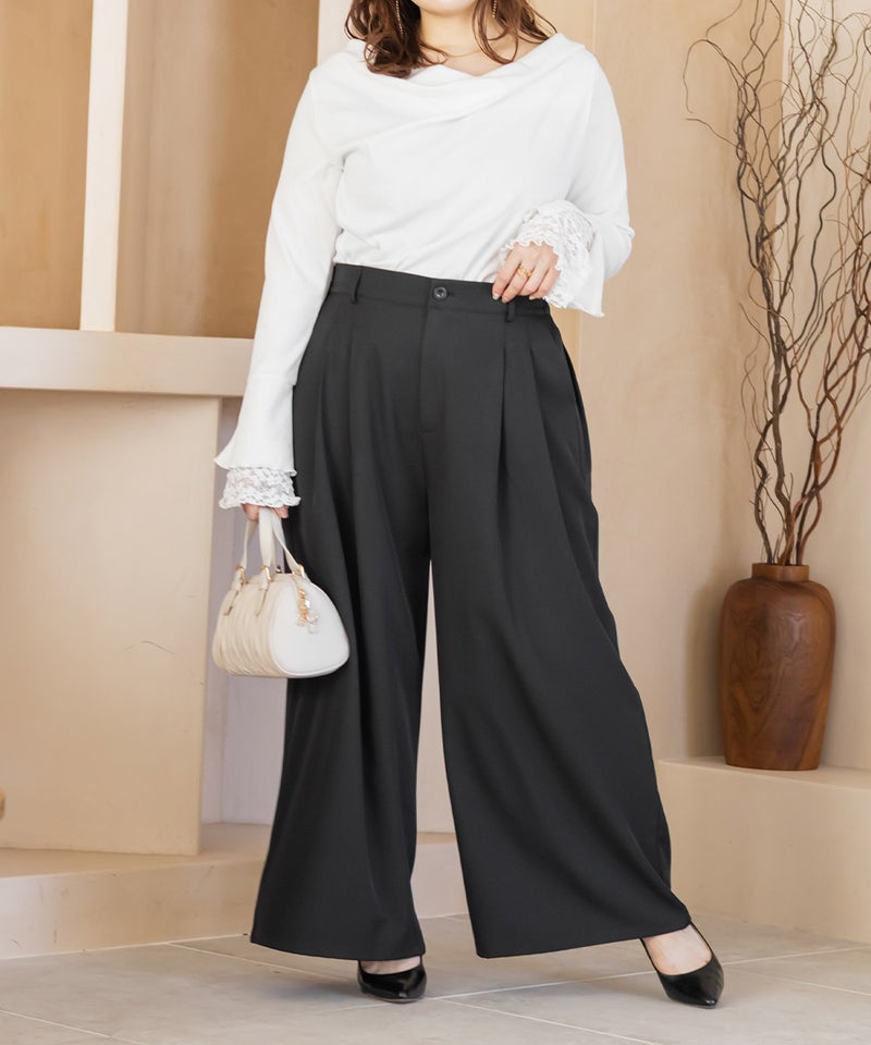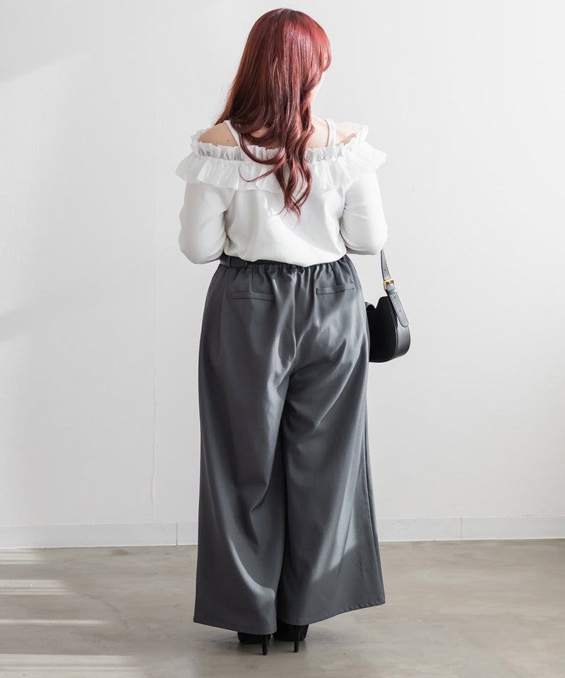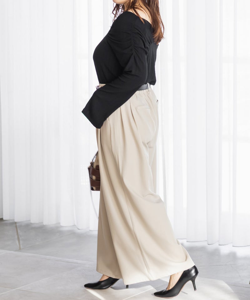3Lを着用してちょうどいいサイズでした。しっかりゆとりがありつつすっきり見えるシルエットで、楽ちんな着心地です◎ワイドパンツだけどフェミニンなスタイルになれるアイテムで、可愛い系のトップスとも、シンプルなトップスとも相性がいいのでおすすめです。オールシーズン使える便利なワイドパンツです!