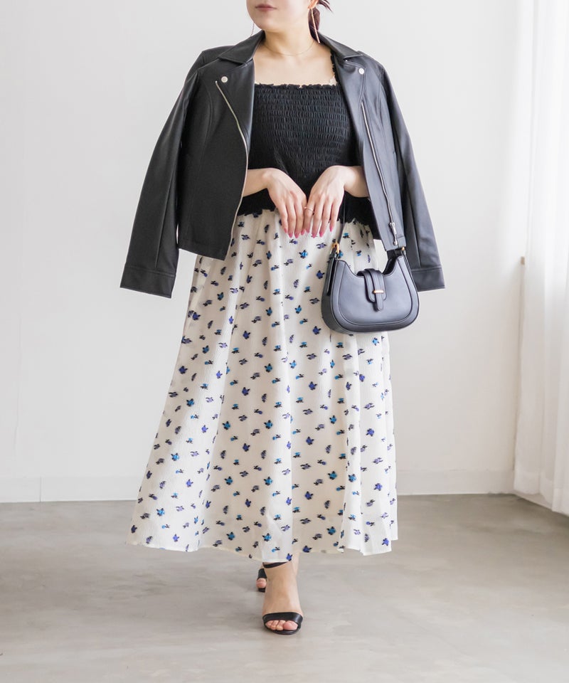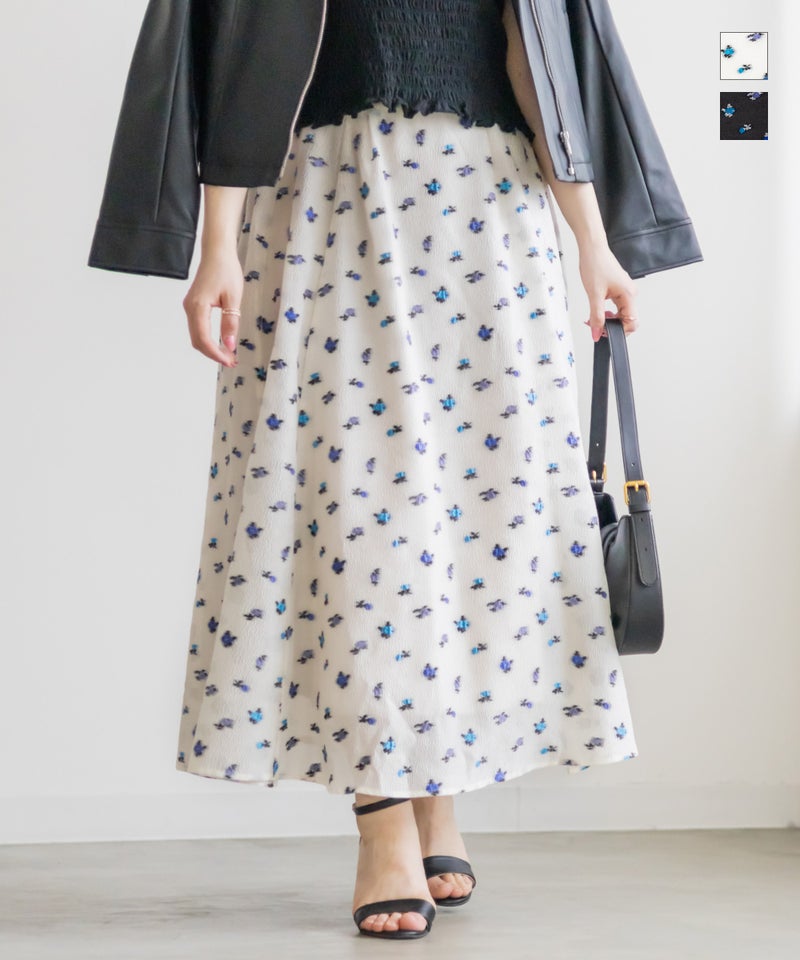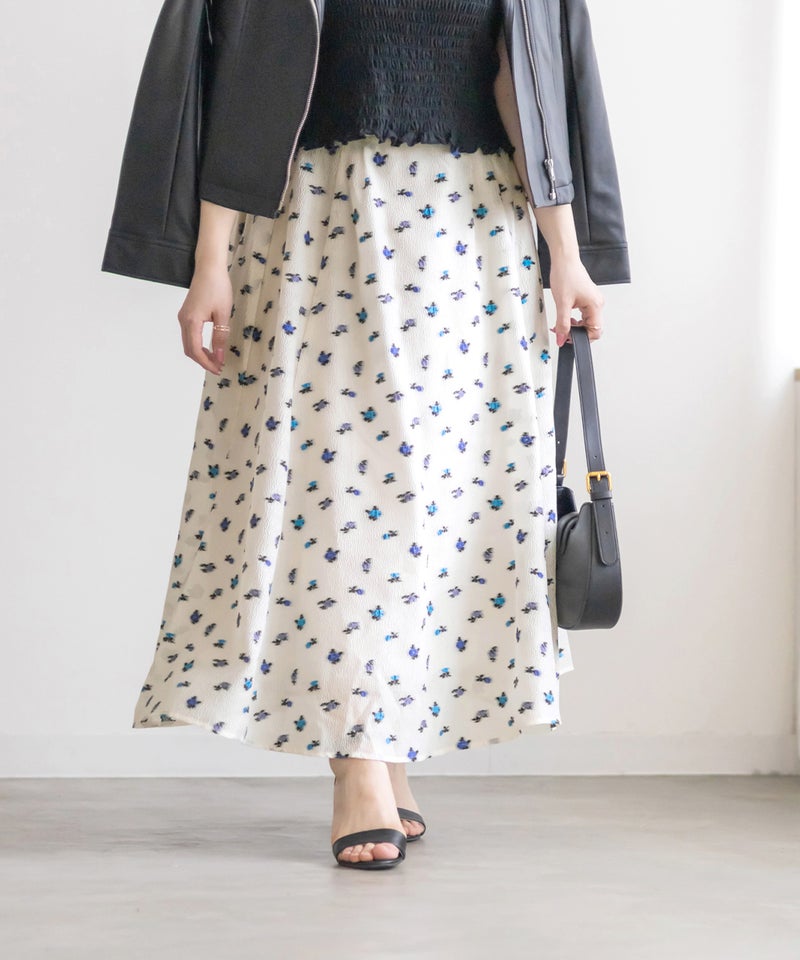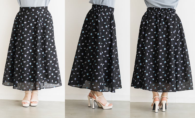 3Lサイズを着用しました! ウエストは後ろゴム仕様でフィット感がありながらも、締め付け感がなく快適な履き心地でした! タックがしっかり入ったデザインなので、ふんわりと立体的なシルエットになり、気になる腰まわりもカバーしてくれます。 軽やかなシアー素材に上品な花柄が施されていて、動くたびにふわっと揺れるのが魅力◎ 透け感が程よく、大人っぽく高級感のある印象を演出してくれます。シンプルなトップスと合わせるだけでコーデが華やかになり、きれいめにもカジュアルにも着こなしやすいのが嬉しいポイント♪ シアー感があるので重たくならず、季節を問わず長く楽しめる一枚です! 足元はパンプスできれいめに仕上げるのはもちろん、スニーカーと合わせてカジュアルダウンするのもおすすめです!花柄スカートが好きな方や、上品な雰囲気のスカートをお探しの方にぴったりのアイテムです!