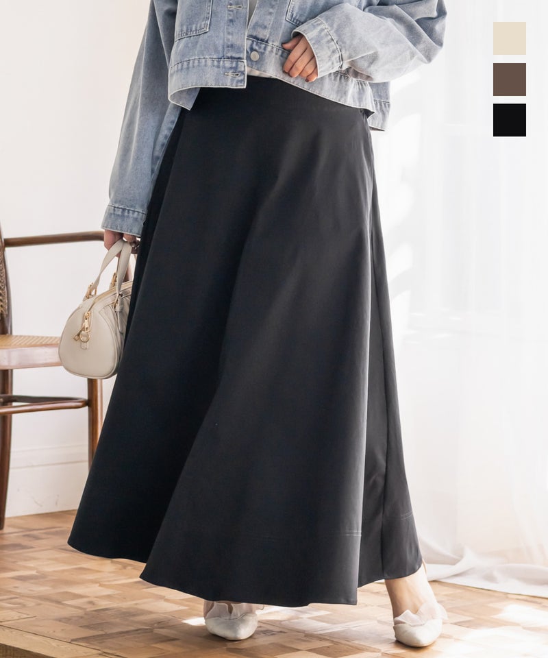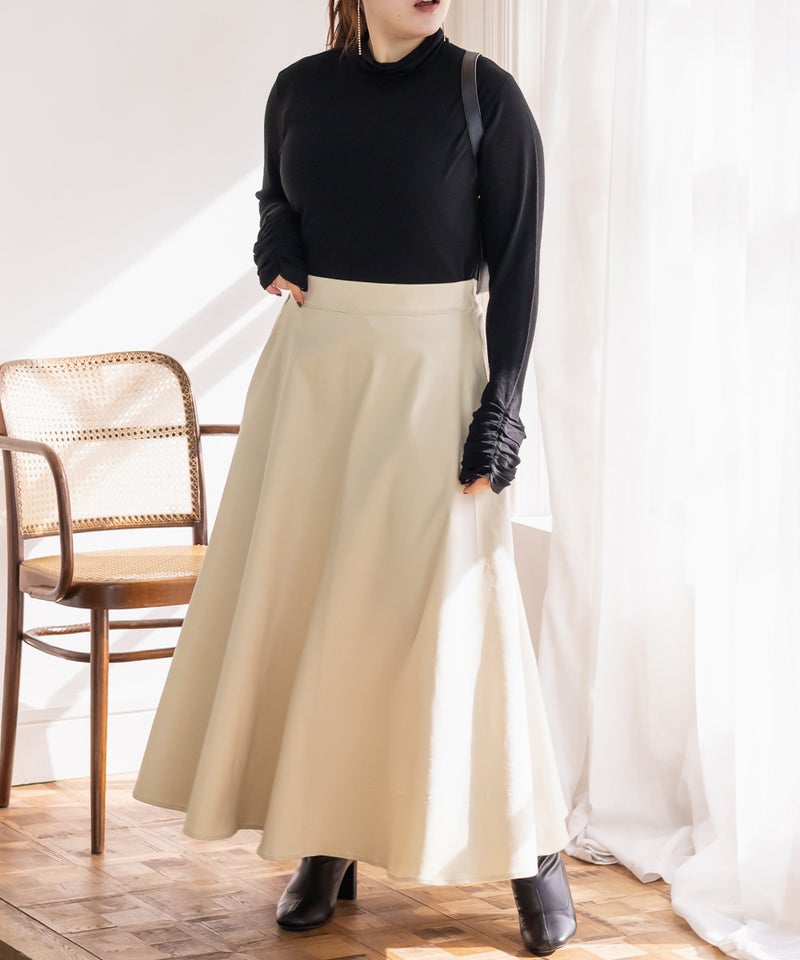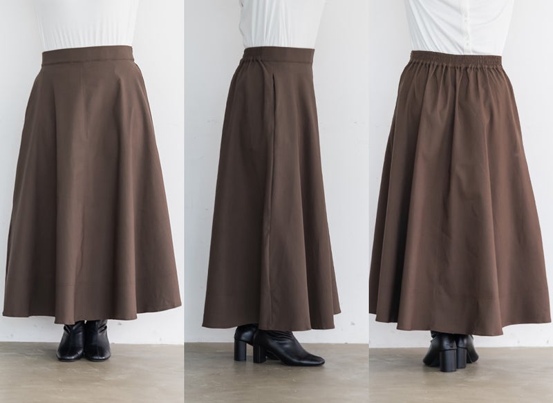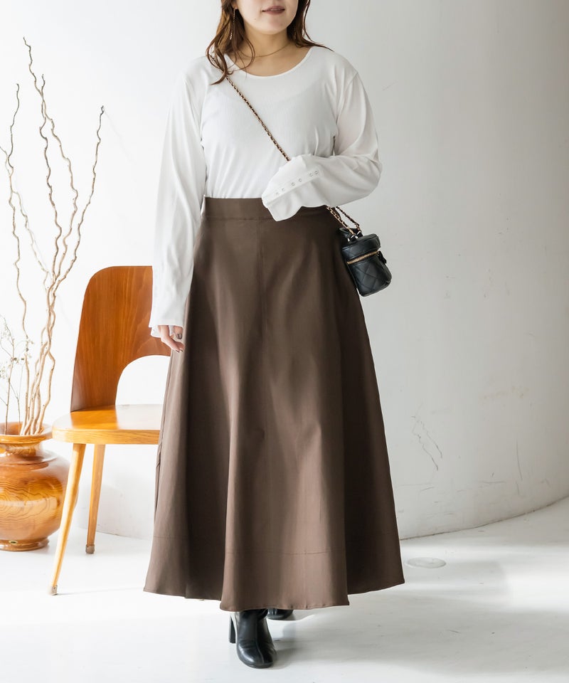 3Lサイズを着用しました。いつも着ているサイズ感と比べてちょうどよく、ウエストまわりも窮屈感なく安心して穿けました。たっぷりとしたフレアシルエットですが、広がりすぎず落ち感がきれいなので、下半身のラインを自然にカバーしてくれます!ロング丈でも重たく見えにくく、動くたびに揺れるシルエットがとても女性らしい印象に◎ シンプルなトップスを合わせるだけでコーデが完成するので、デイリーはもちろんお出かけにもおすすめです♪ ロングシーズン活躍してくれそうな1枚だと思いました。
