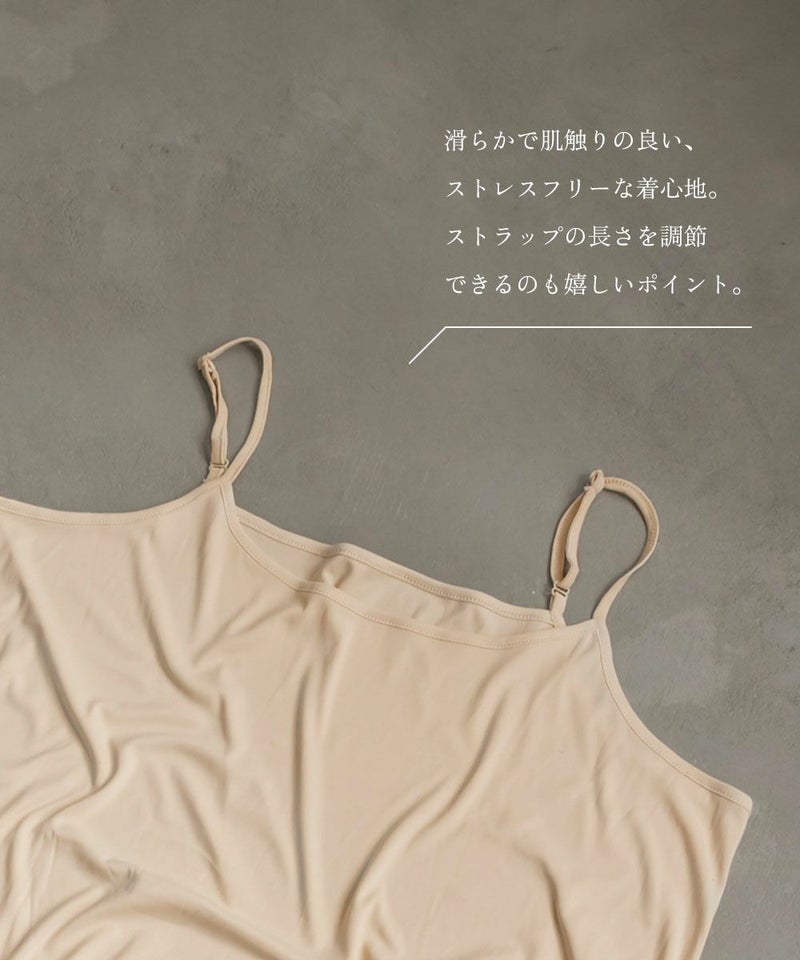 サラッとして着やすく、丈感もちょうどいいので3枚目リピ買いです😭🔥 肩紐はたしかに伸びやすい感じがありますが、調整可能なので今のところ問題なく着れています! サイズはいつものサイズで買うのがベストかと思います。