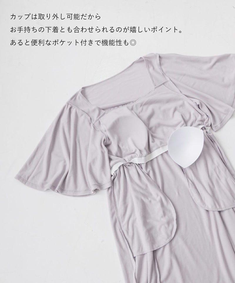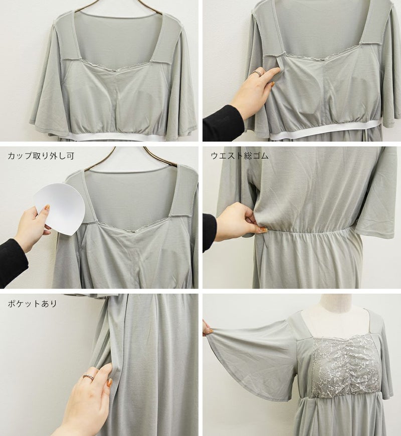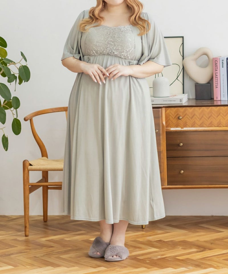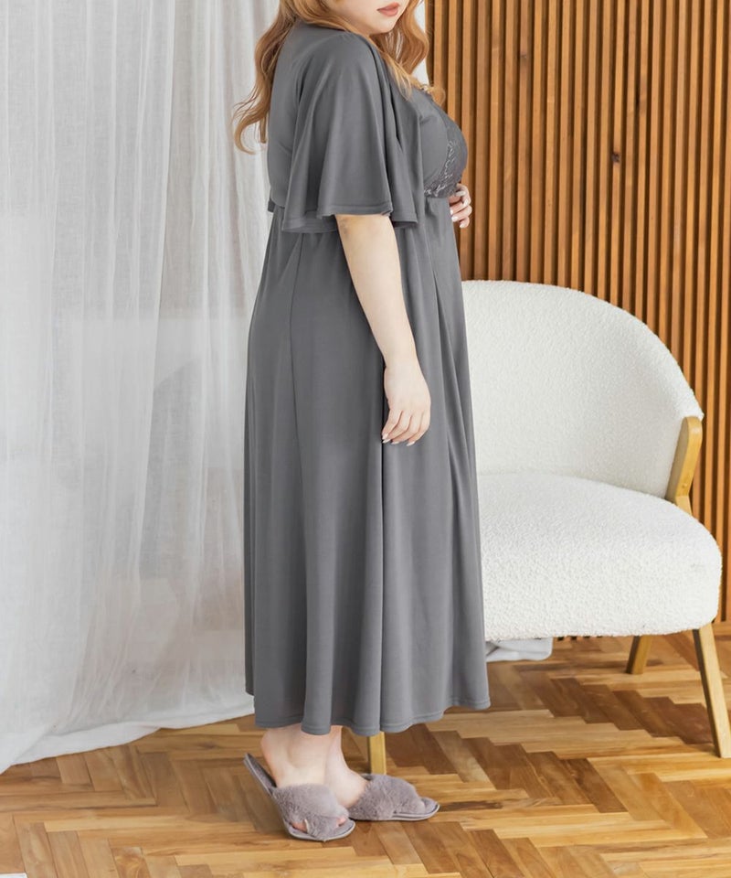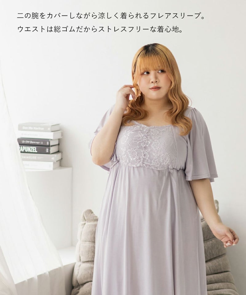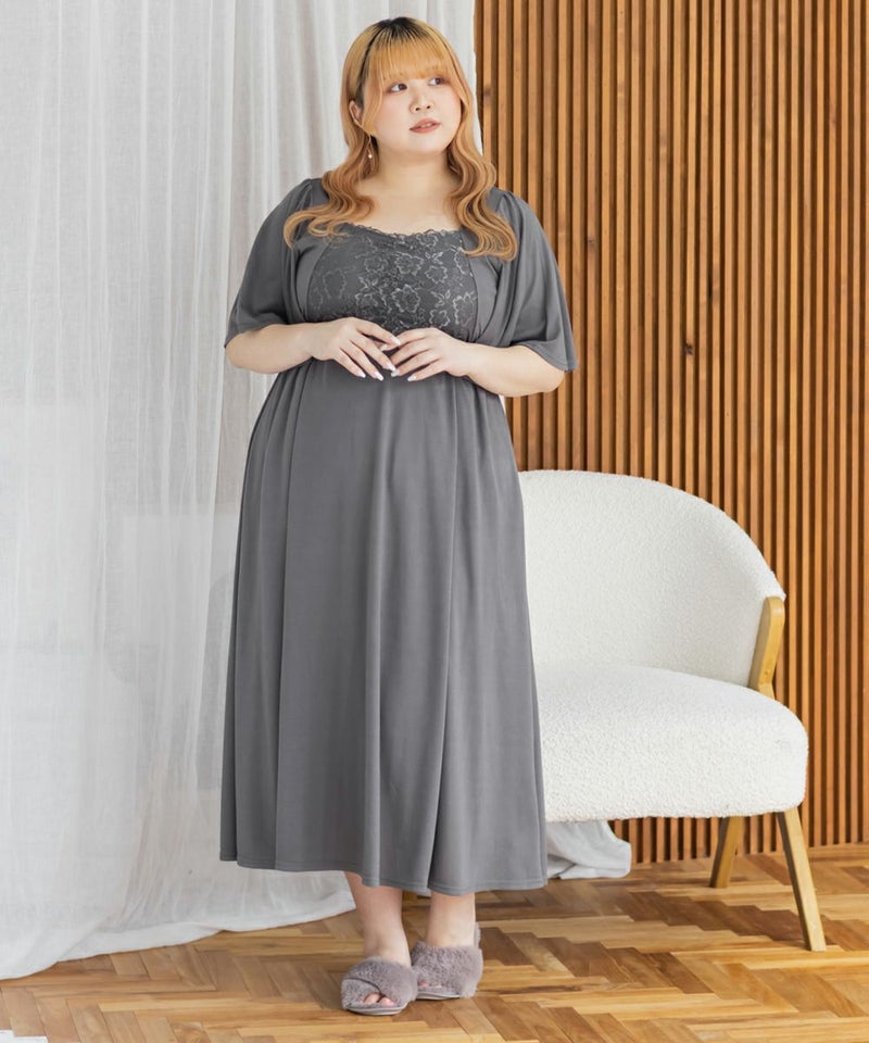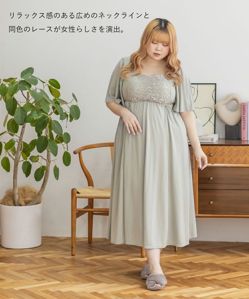 3Lを着て、着用感はちょうどよかったです♪カップ付きなので1枚でさらっと着られて、リラックス感のある着心地が最高でした。ウエスト部分の切り替えデザインのおかげで、すっきりと見えるのが嬉しいポイントです。胸元のレースのデザインが上品で、大人っぽい印象もプラスしてくれるので、ルームウェアでも手を抜きたくない人にぴったり。おうち時間はもちろん、そのままワンマイルウェアとしても使える優秀ワンピースです◎