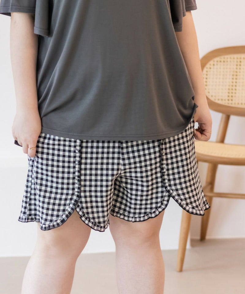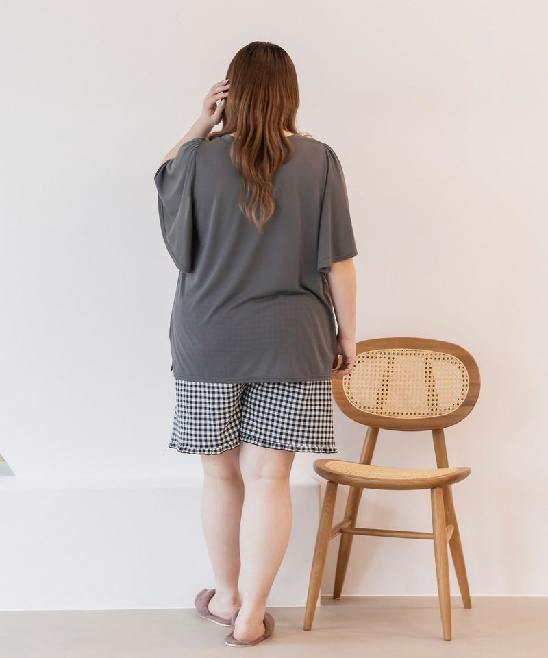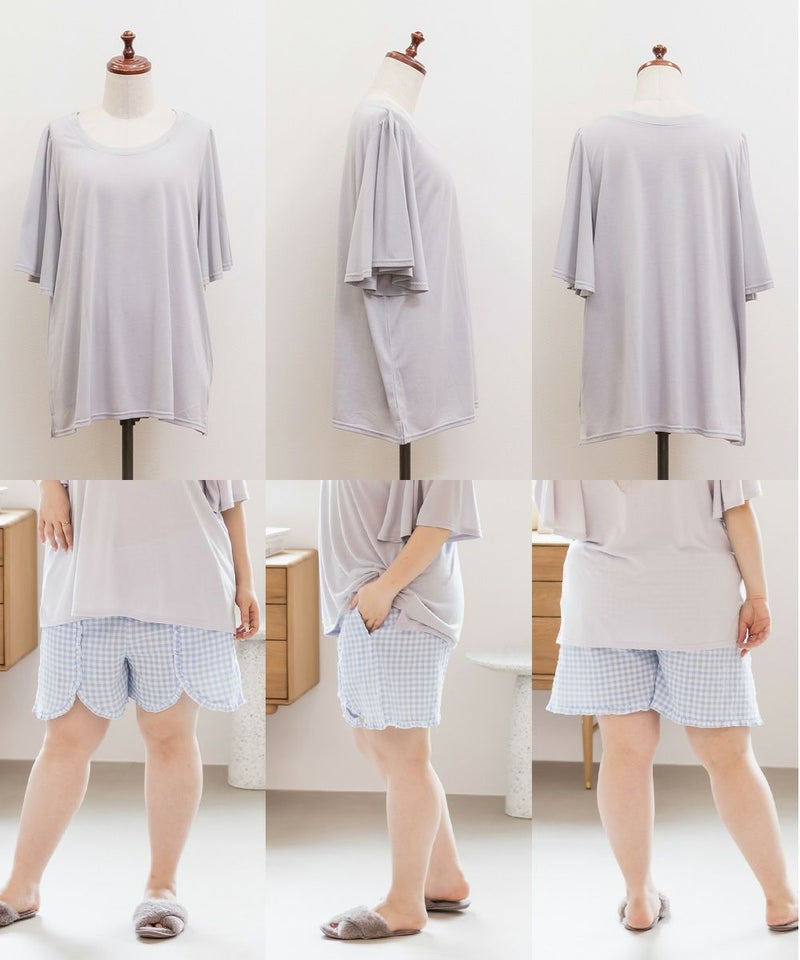 3Lサイズを着用してちょうどいいサイズ感でした。いつも通りのサイズ選びで問題なさそうです。らくちんな着心地で、のんびりするのはもちろん家事もしやすいデザインです◎トップスは気になるお腹周りやおしり・太ももをすっぽり隠す着丈で、着やせするのが嬉しいです♪パンツはお家で使うのにピッタリな短めの丈で、夏も快適に過ごせそうです!セットのルームウェアなのでこれを買うだけでオシャレで可愛いおうちスタイルが完成します!