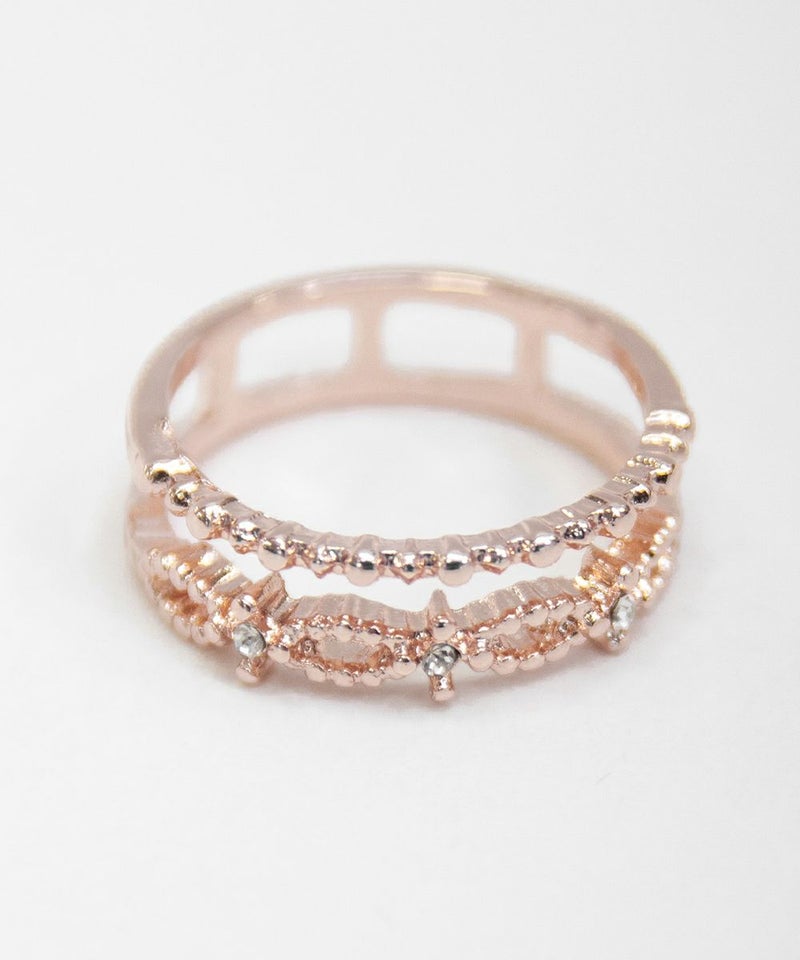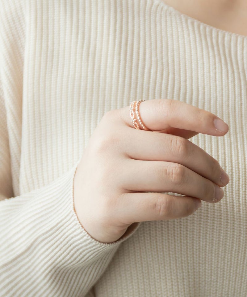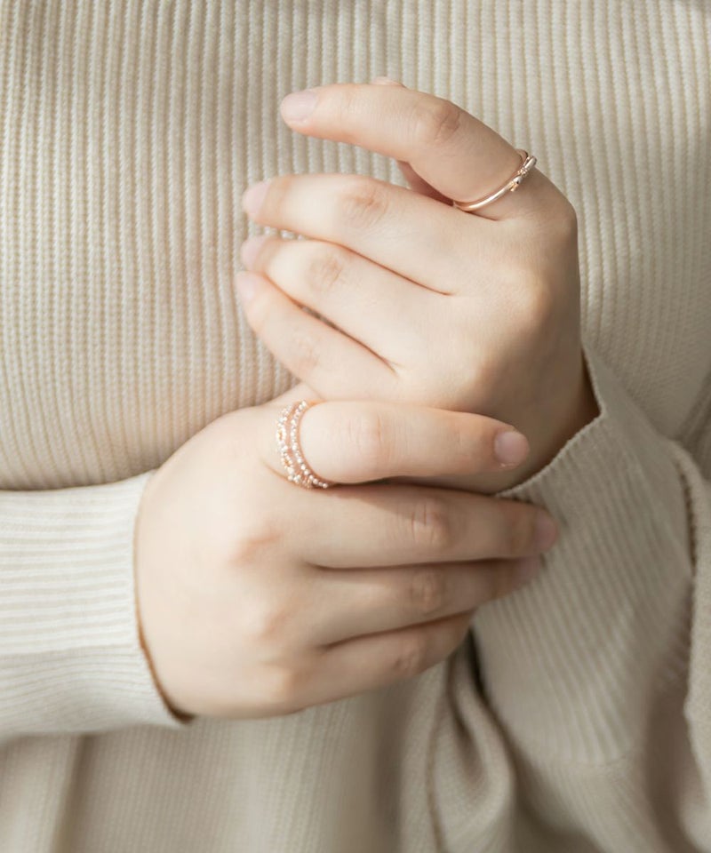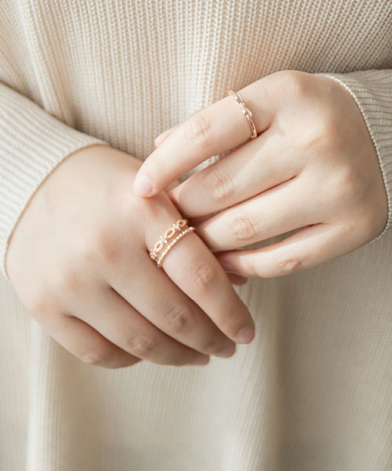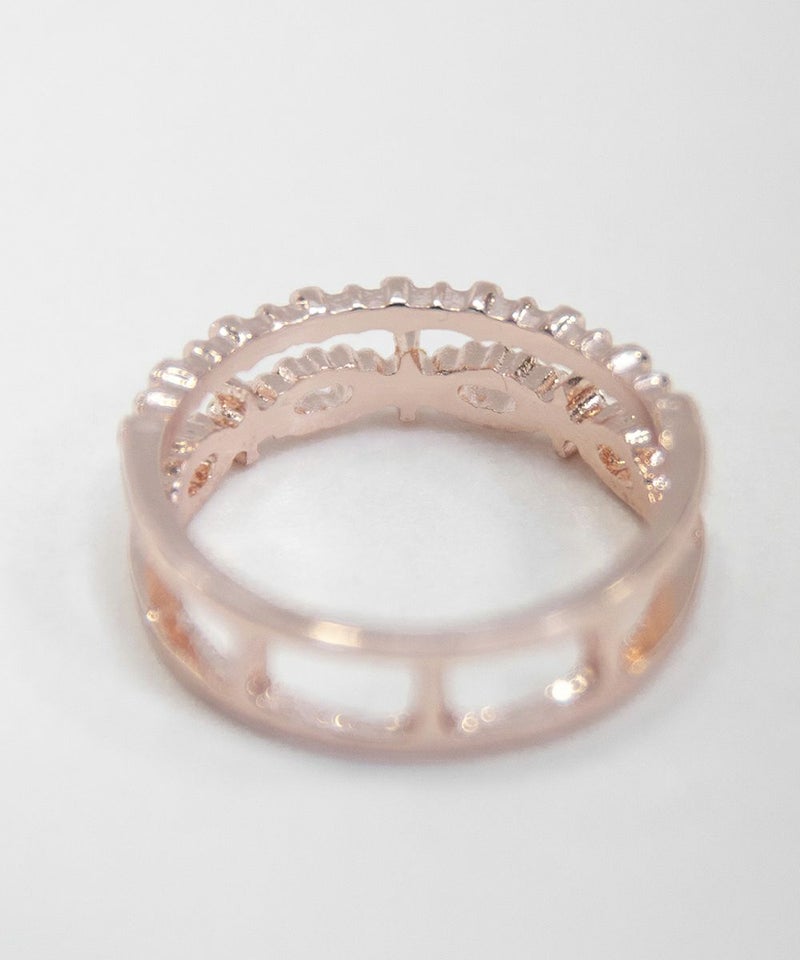 人差し指にはめて程よいサイズ感でした。サイズ表を確認してからご購入をお勧めします。華やかなストーンと繊細なデザインが上品で女性らしいアイテムで、デイリー使いから特別なお出かけにも使えてたくさん活躍するリングです◎手元が寂しいとき華やかに飾ってくれるのでスタイリングにプラスしたいアクセサリーです。大きめリングでなかなかないデザインなので嬉しいです♪