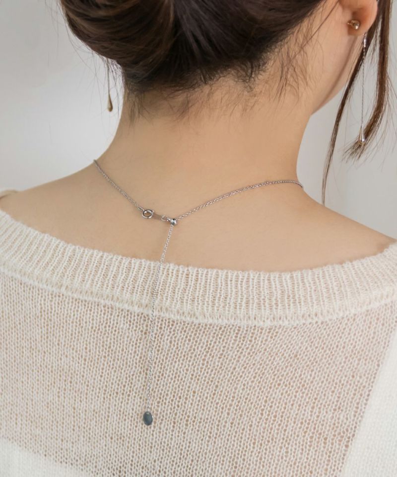 ドロップモチーフが洗練された大人っぽい雰囲気で、普段のコーデに取り入れるだけでお洒落な雰囲気になれます♪使いやすいシンプルなデザインなのでどんなお洋服とも相性良くお使いいただけます!程よく大きめのモチーフになっているのもポイントで小顔見えします◎見た目以上に軽い着用感なのも嬉しいです!1つだけで使うのは勿論、他のネックレスとの重ね付けもおすすめです!普通の長さより少し長めに作られているので、今までネックレスの長さが短くてアクセサリーを楽しめなかった方にも是非チャレンジしてほしいです!