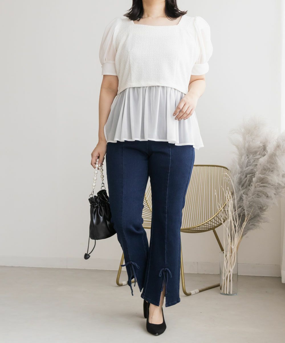 他の画像を見る CLETTE オリジナル 裾リボン ストレッチ デニム パンツ LL 3L 4L クレット 楽ちん CLETTEオリジナル★裾リボンストレッチデニムパンツ ¥ 5,940 税込 カートに入れる お気に入りに登録する