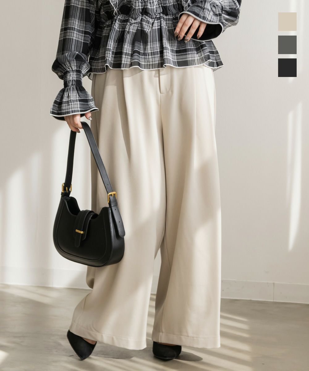 他の画像を見る CLETTE クレット オリジナル ワイドパンツ ロングパンツ 仕事 綺麗め フェミニン オフィス 着やせ 着回し CLETTEオリジナル★タックワイドパンツ ¥ 4,950 税込 カートに入れる お気に入りに登録する