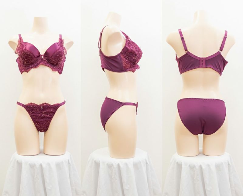 脇高サイドリフトレースアップサテンブラジャー&ショーツセット