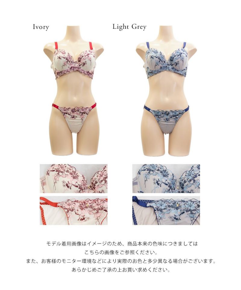脇高 配色 フラワー 刺繍 ブラジャー ショーツ セット 大きいサイズ レディース クレット ランジェリー