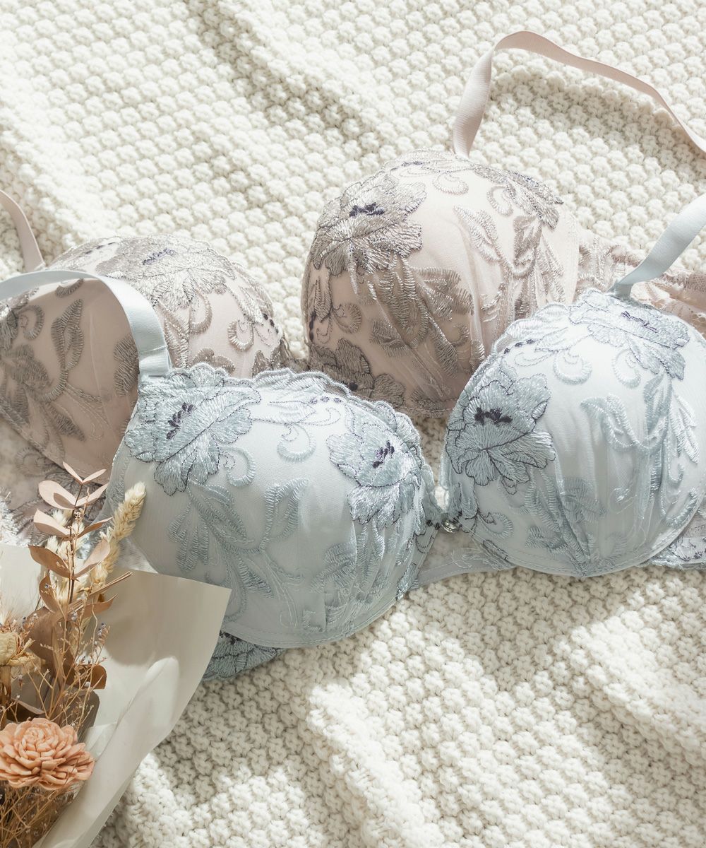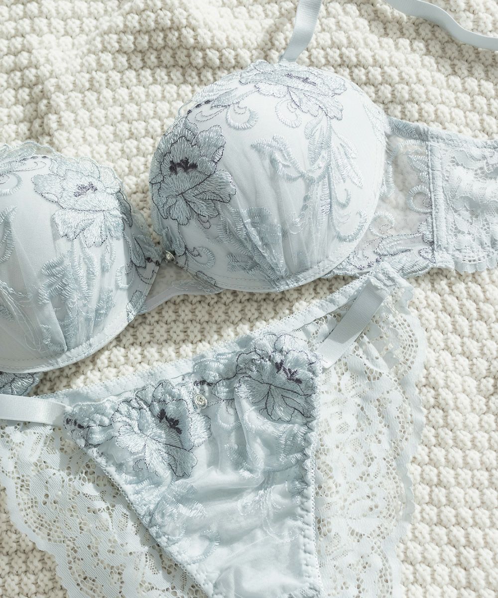 脇高フラワー刺繍ソフトワイヤーブラジャー&ショーツセット