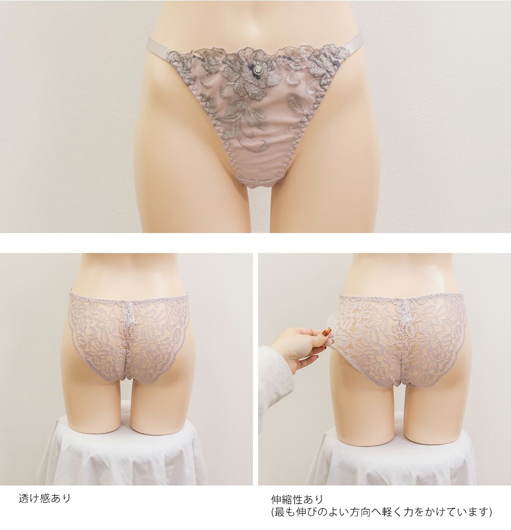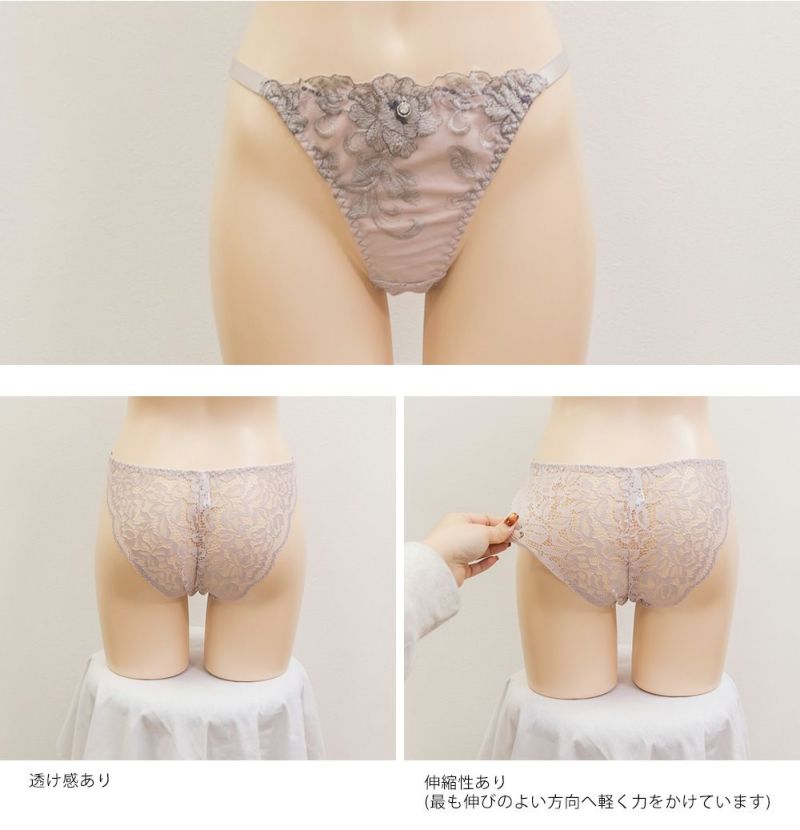 脇高 フラワー 刺繍 ソフトワイヤー ブラジャー ショーツ セット 3/4カップ 美乳 盛れ キレイめ