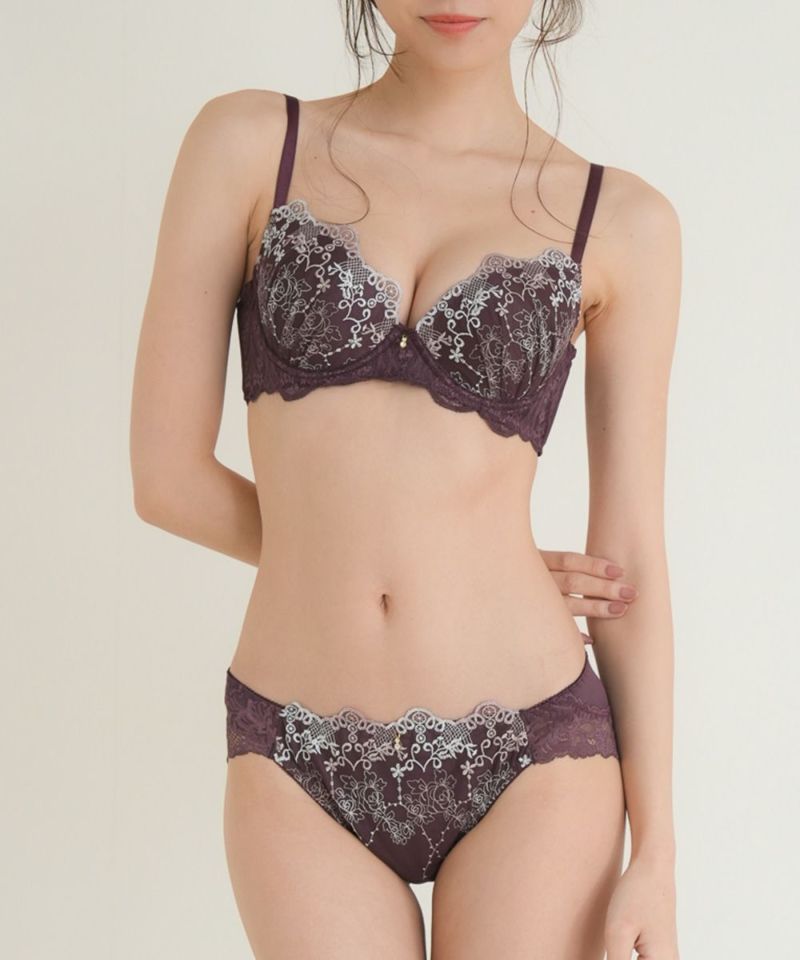 脇高 クラシカル レース ブラジャー ショーツ セット 3/4カップ 美乳 盛れ キレイめ