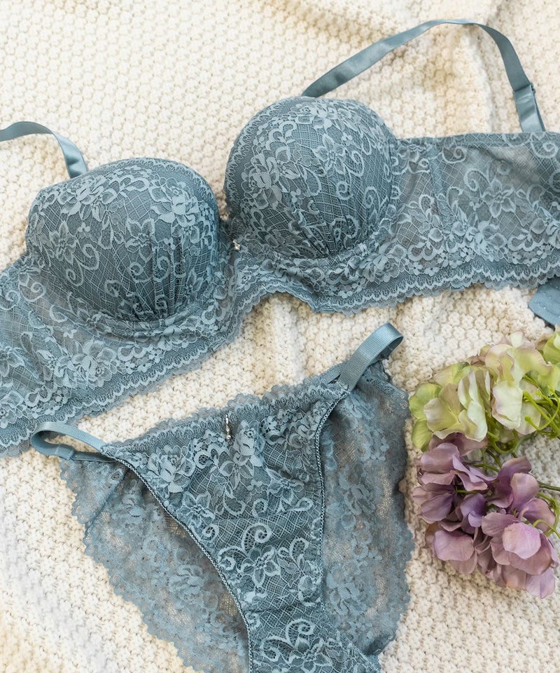 脇高ビスチェ風レーシーブラジャー&ショーツセット