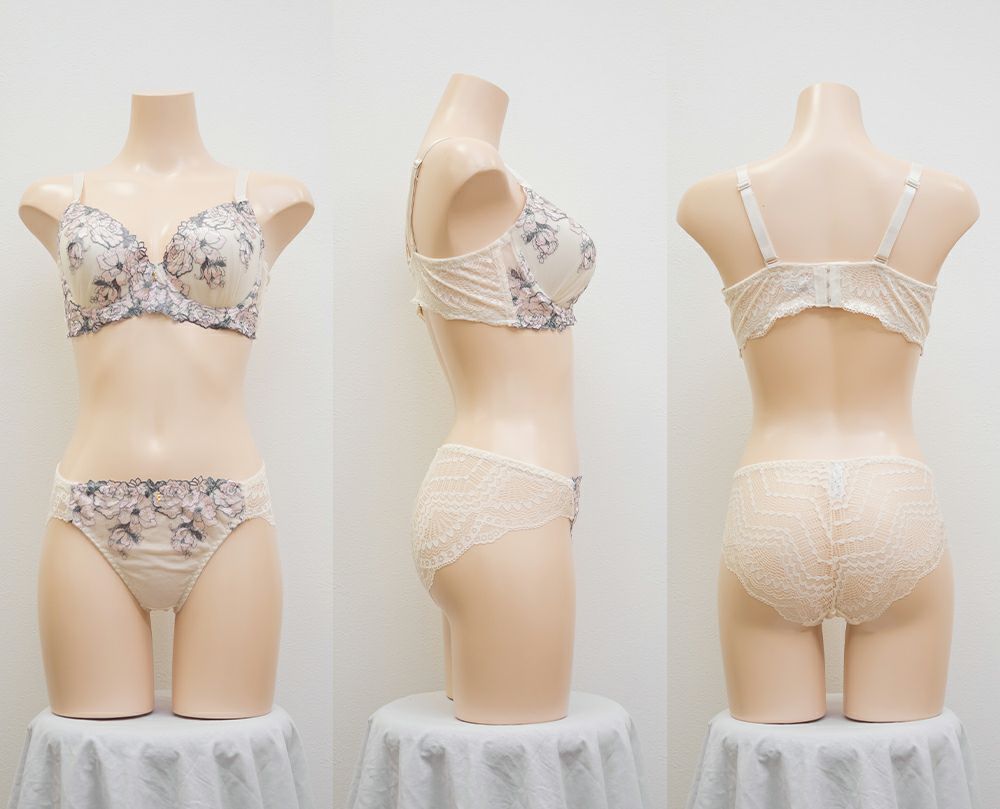 【カップタイプ】3/4カップ・モールドカップ(丸みを形成した厚みのあるカップです)、【ホックの数】3段3列、【パット付属】なし、【パットポケット】なし、【ストラップ取外し】可、【ワイヤー】あり、※タンブル乾燥禁止