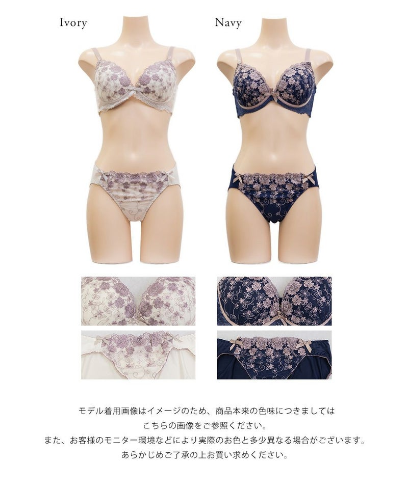 脇高アンティークレースソフトワイヤーブラジャー&ショーツセット