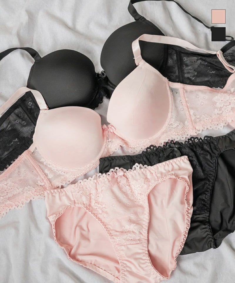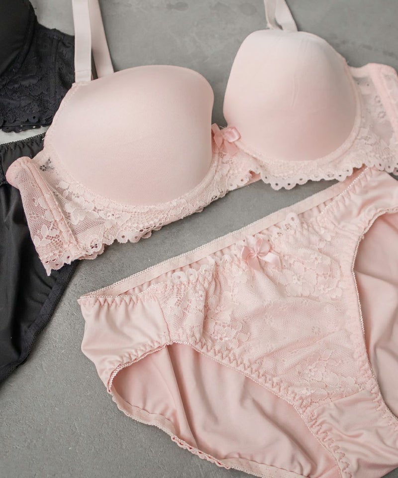 脇高シンプルデザイン花柄レースブラジャー&ショーツセット