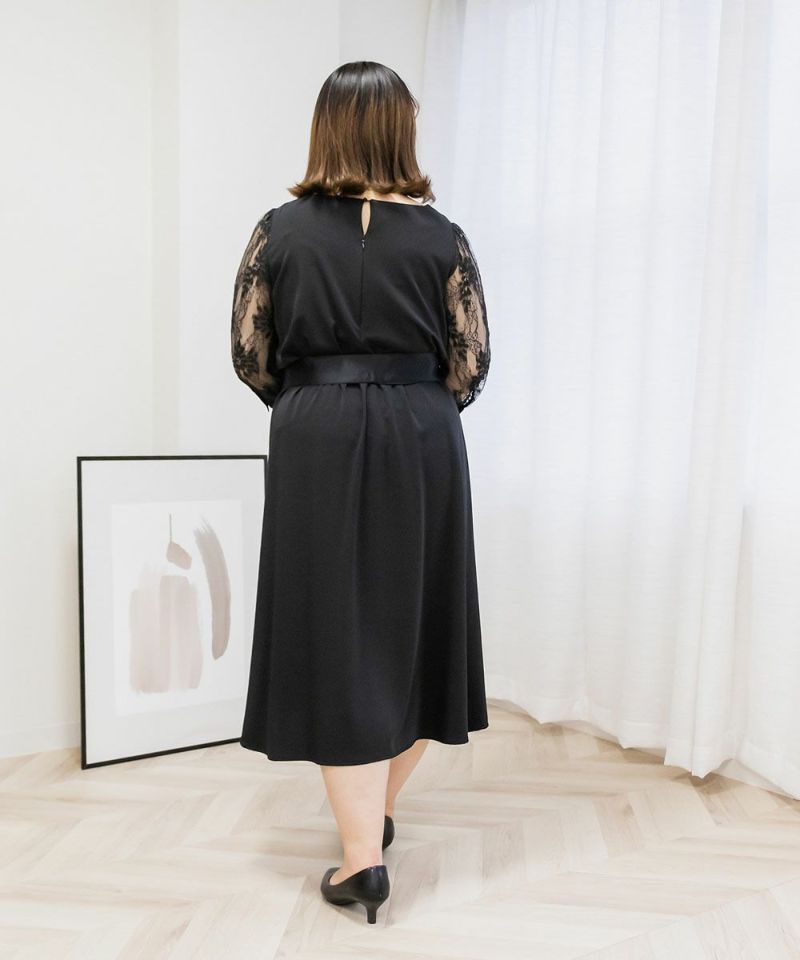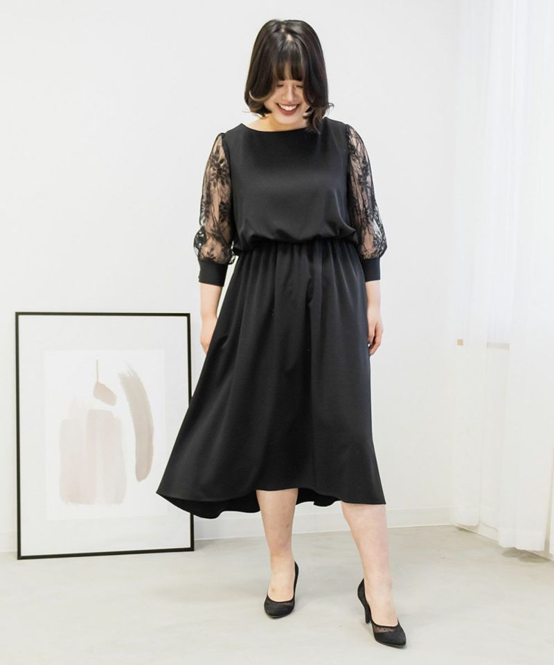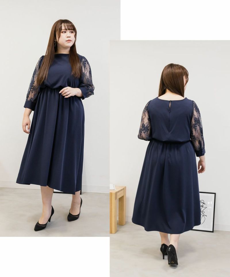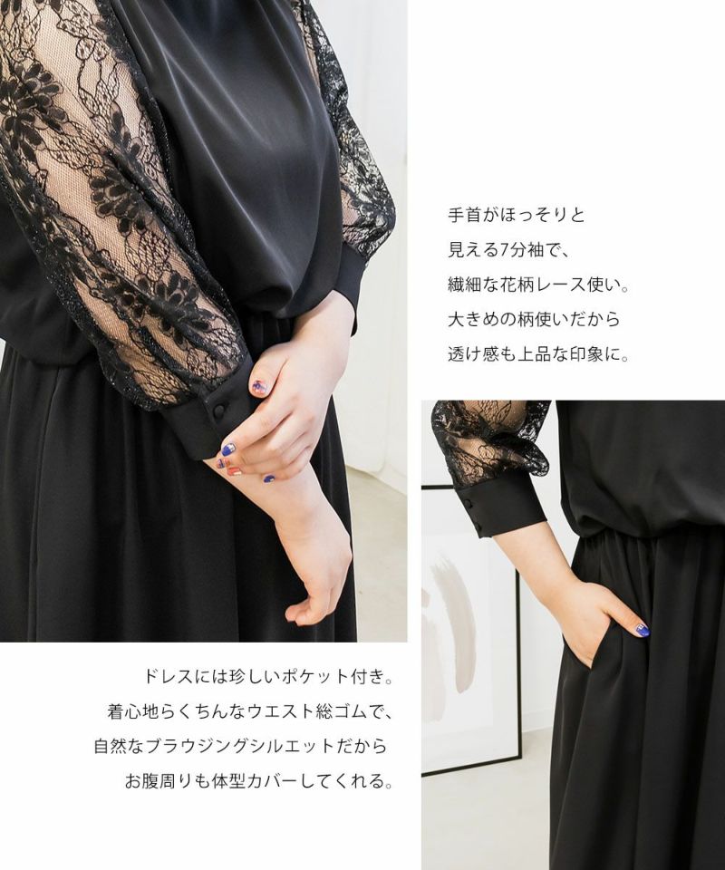 3Lサイズを着用してちょうどいいサイズ感でした。ウエストはゴム仕様で窮屈感なく着用できます。ポケットもありの機能性も満足なドレスです!袖が上品な透け感で大人っぽいレースなので年齢問わず着用できそうです◎見頃は落ち感のある素材で女性らしくさらっと着用していただけます◎透けの心配もないので、インナーに悩まず安心して着用できるデザインです。