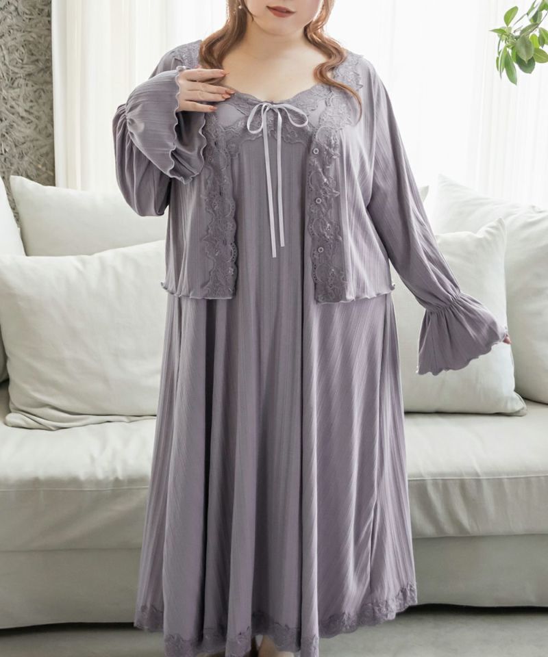 クレット LL 3L 4L 部屋着 パジャマ ワンマイルウェア 大きいサイズ リラックス キャミワンピ CLETTEオリジナル★ルームウェアレース使いワンピース
