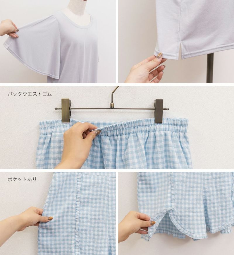3Lサイズを着用してちょうどいいサイズ感でした。いつも通りのサイズ選びで問題なさそうです。らくちんな着心地で、のんびりするのはもちろん家事もしやすいデザインです◎トップスは気になるお腹周りやおしり・太ももをすっぽり隠す着丈で、着やせするのが嬉しいです♪パンツはお家で使うのにピッタリな短めの丈で、夏も快適に過ごせそうです!セットのルームウェアなのでこれを買うだけでオシャレで可愛いおうちスタイルが完成します!