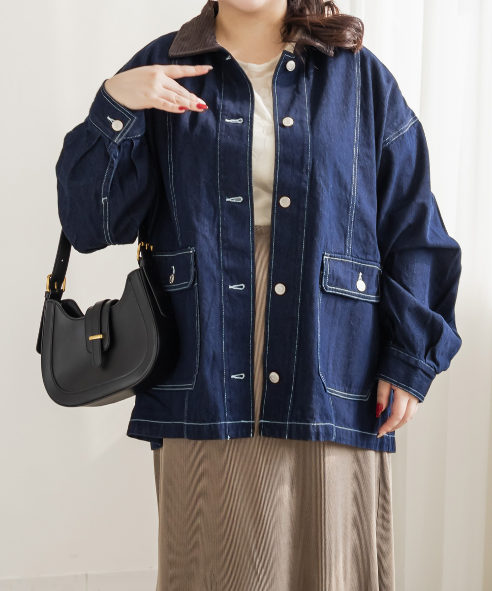 コーデュロイ衿デニムカバーオール コーデュロイ衿デニムカバーオール