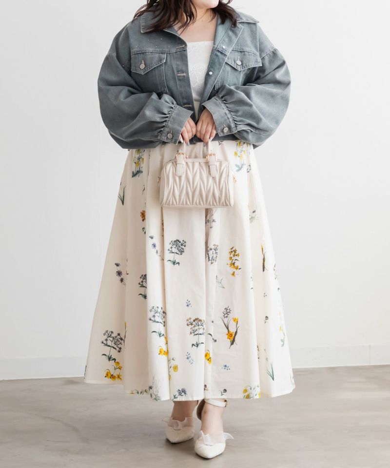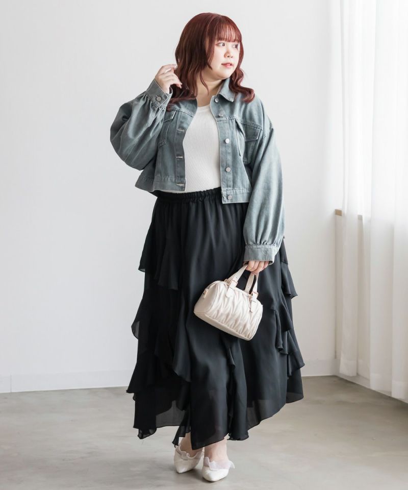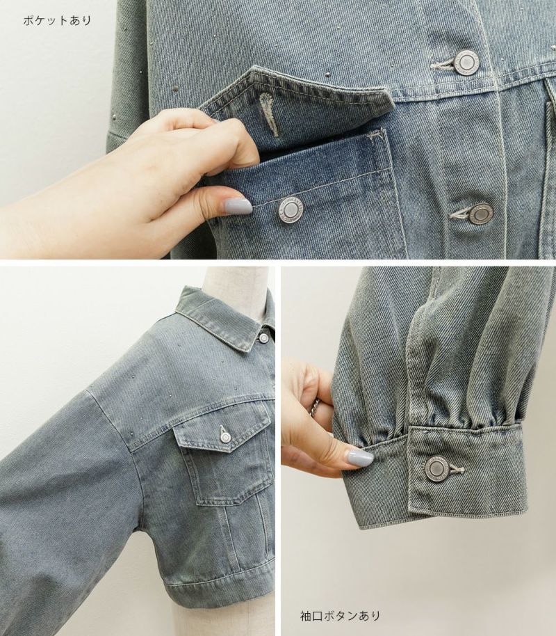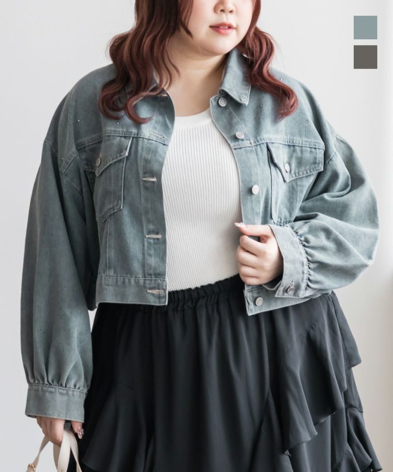 3Lサイズを着てちょうどいい着心地でした。少し軽めのデニムで楽な着心地でした!ゆるっと着ても可愛いと思うので好みに合わせてサイズを選んでみてもいいかもしれないです♪着回ししやすいちょうどいい丈感で、羽織としてロングシーズン使えるGジャンは1枚は持っておきたいマストアイテムです!カジュアル感のあるアイテムですが、ラインストーンがついていてさりげなくキラキラするのがポイントです◎キレイめなスラックスや甘めのスカートと合わせることでカジュアルダウンしすぎないコーディネートになってかわいいです!